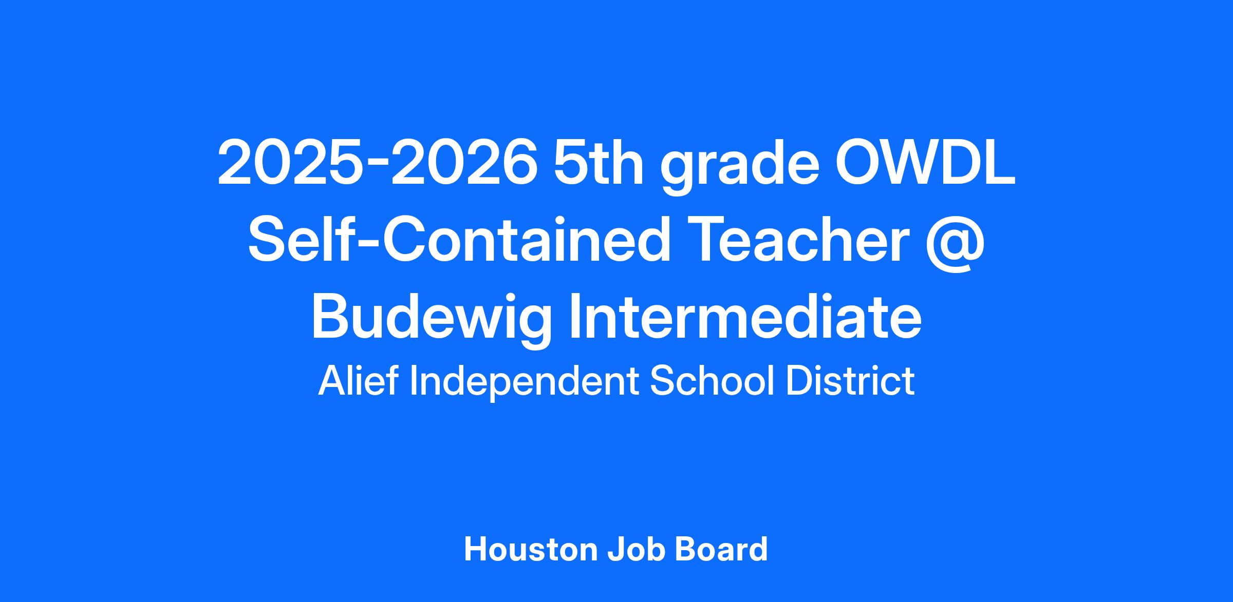 2025-2026 5th grade OWDL Self-Contained Teacher @ Budewig Intermediate