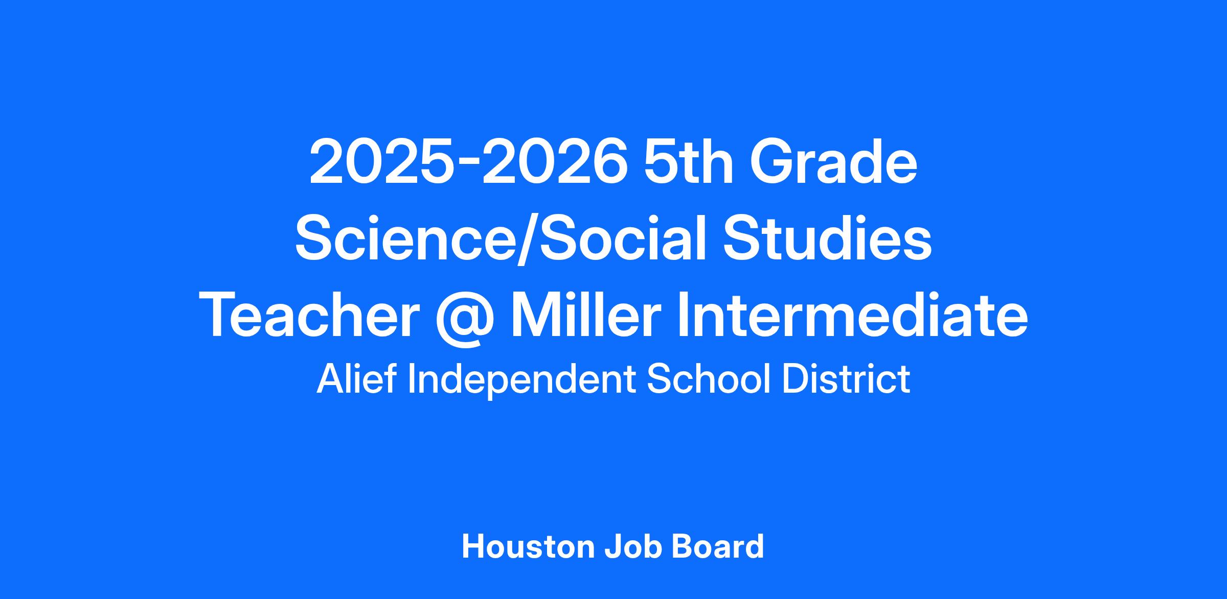 2025-2026 5th Grade Science/Social Studies Teacher @ Miller Intermediate
