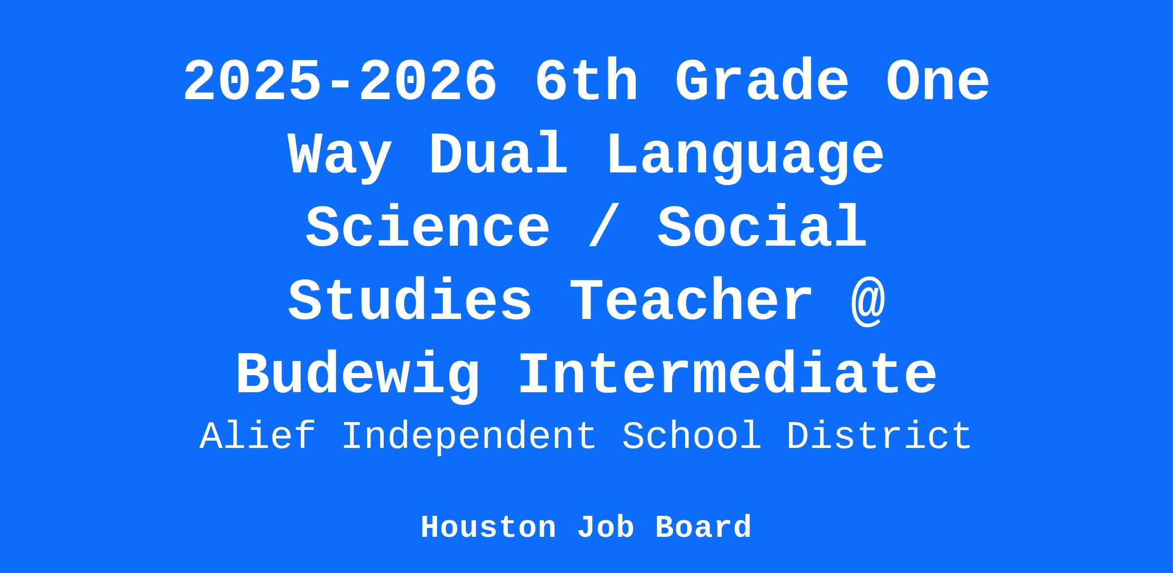 2025-2026 6th Grade One Way Dual Language Science /Social Studies Teacher @ Budewig Intermediate