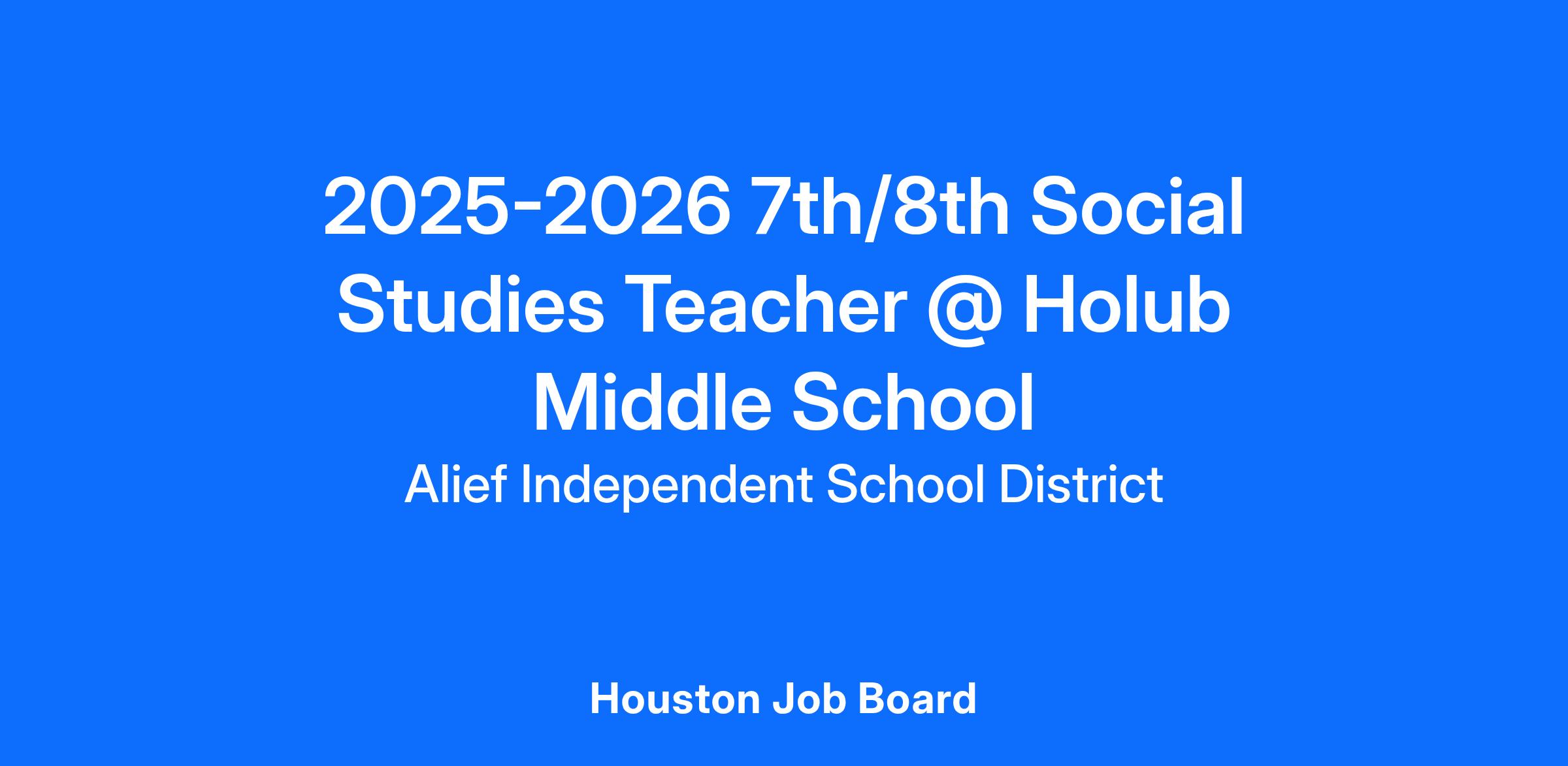 2025-2026 7th/8th Social Studies Teacher @ Holub Middle School
