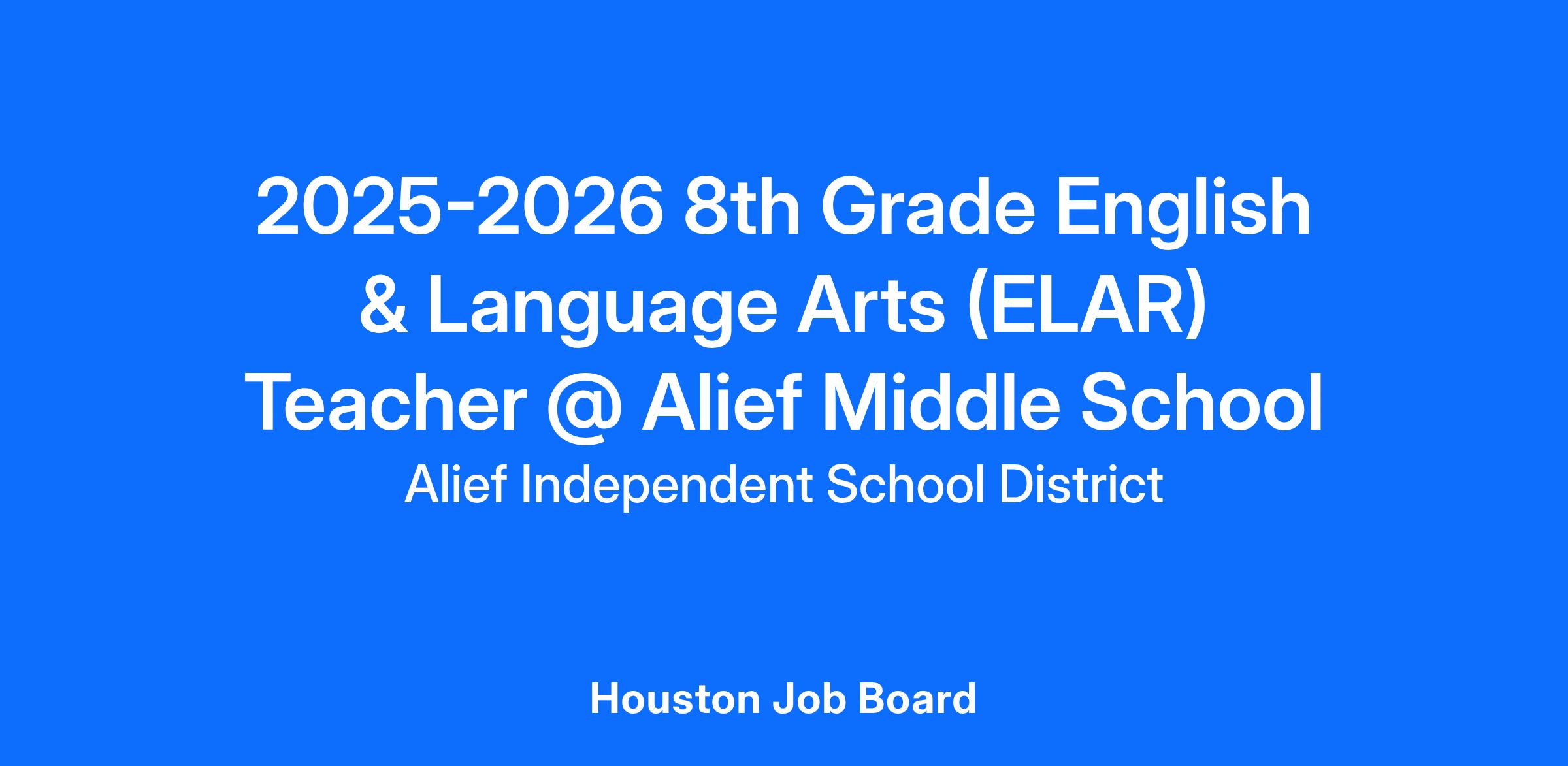 2025-2026 8th Grade English & Language Arts (ELAR) Teacher @ Alief Middle School