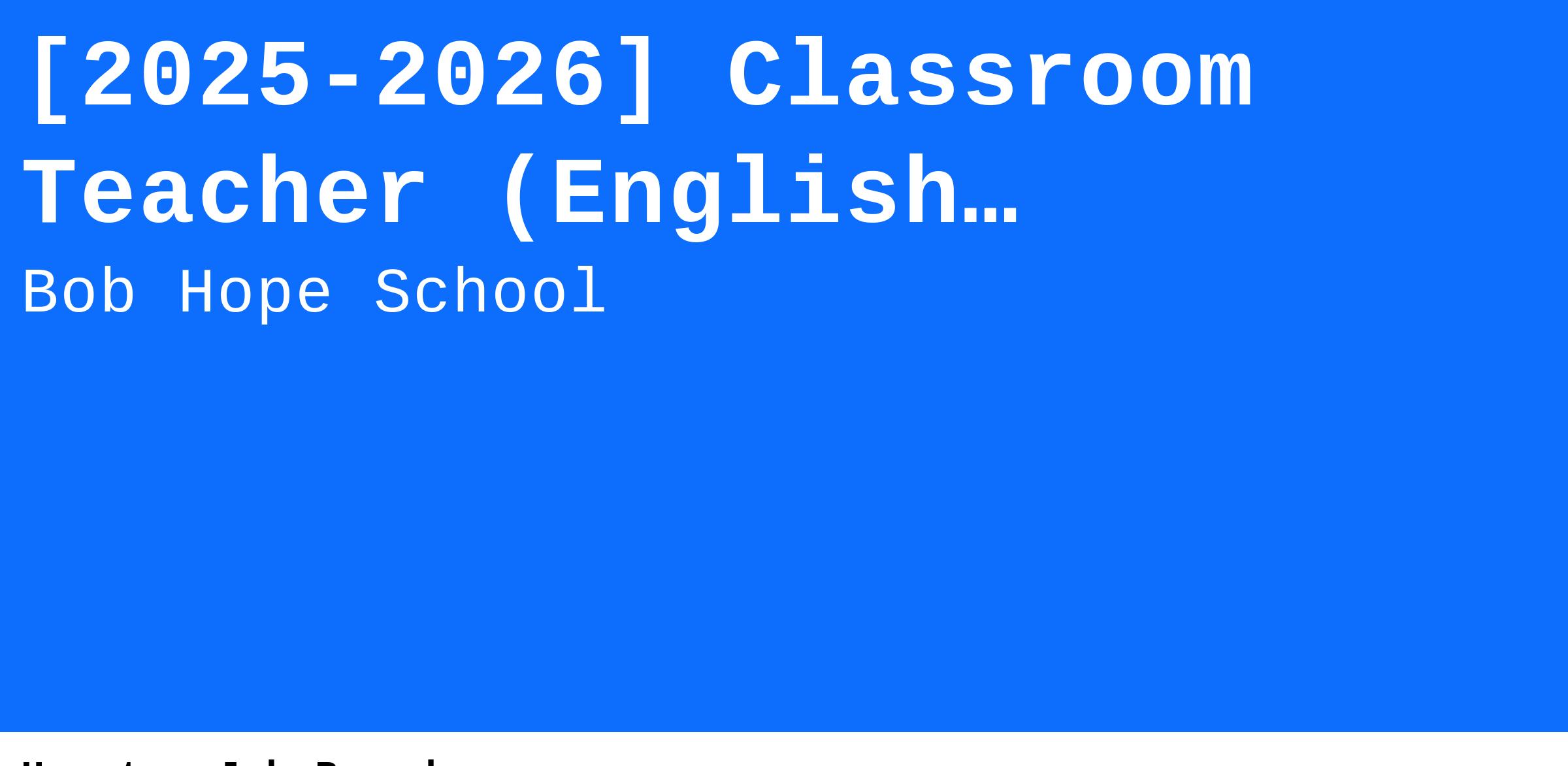 JOB TITLE: Classroom Teacher (English)