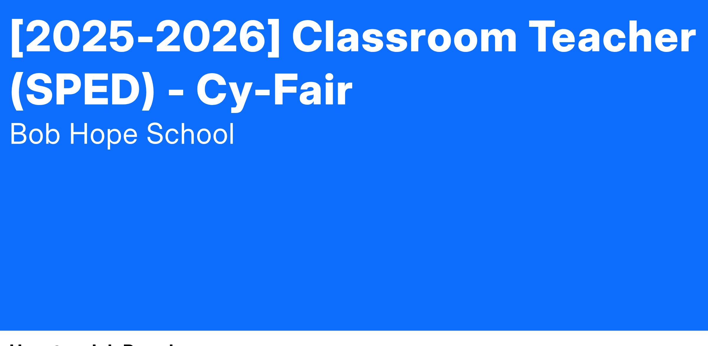 DEPT. / SCHOOL: Academic / Bob Hope School / Cy-Fair