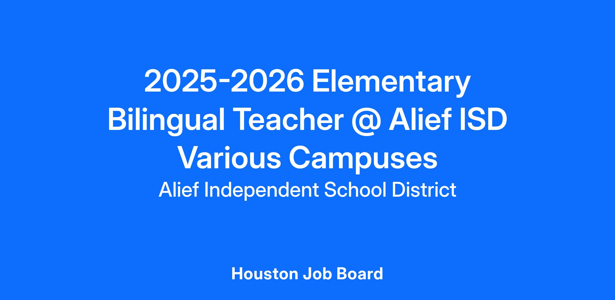 2025-2026 Elementary Bilingual Teacher @ Alief ISD Various Campuses