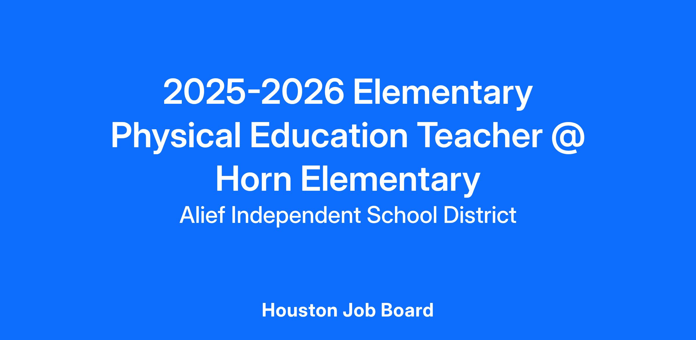2025-2026 Elementary Physical Education Teacher @ Horn Elementary