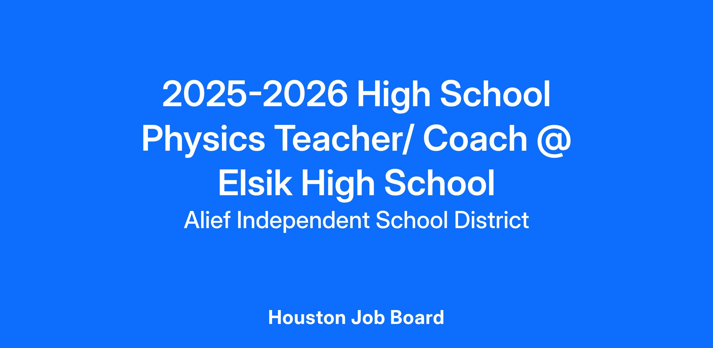 2025-2026 High School Physics Teacher/Coach @ Elsik High School