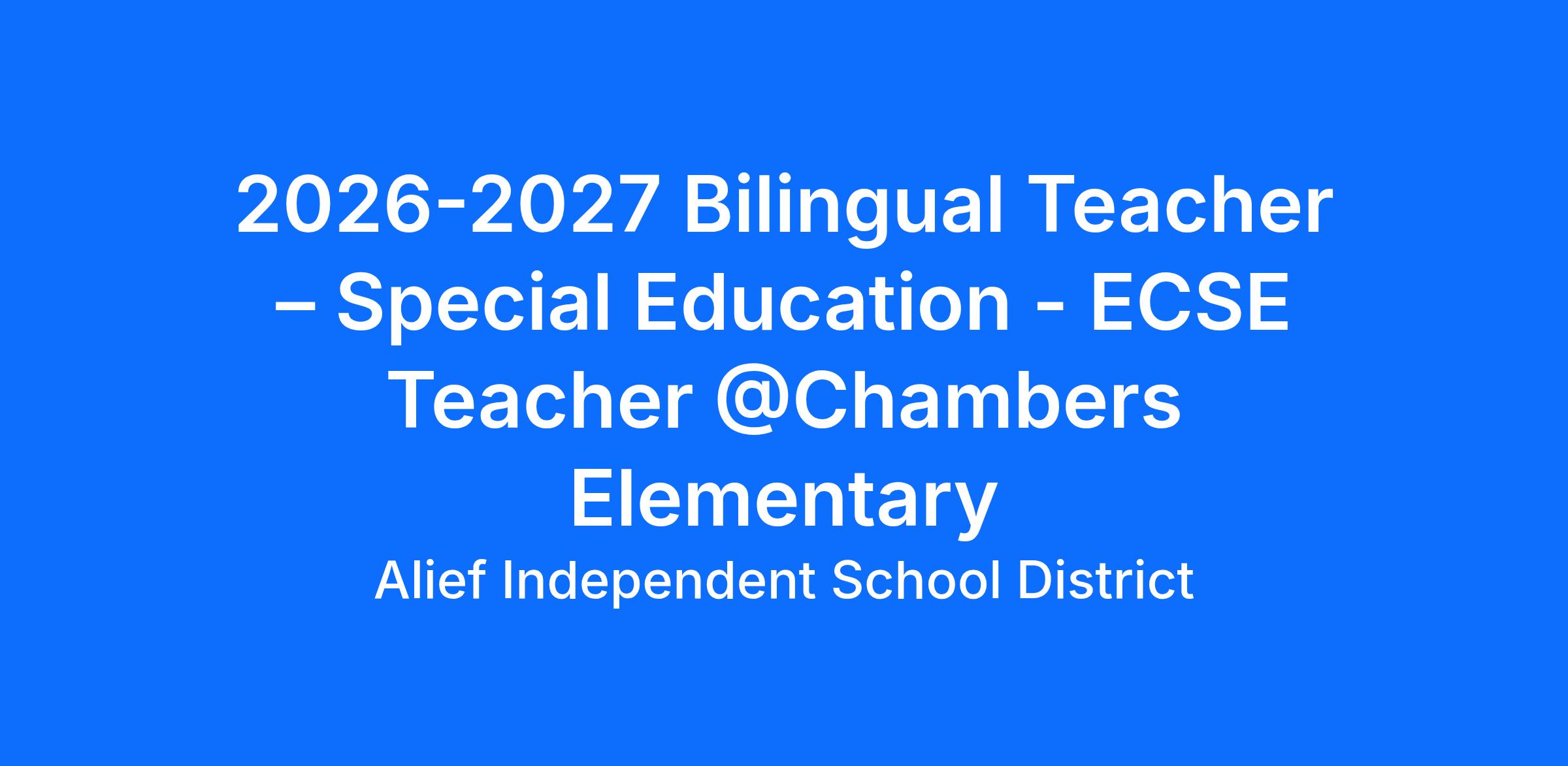 2026-2027 Bilingual Teacher – Special Education - ECSE Teacher @ Chambers Elementary