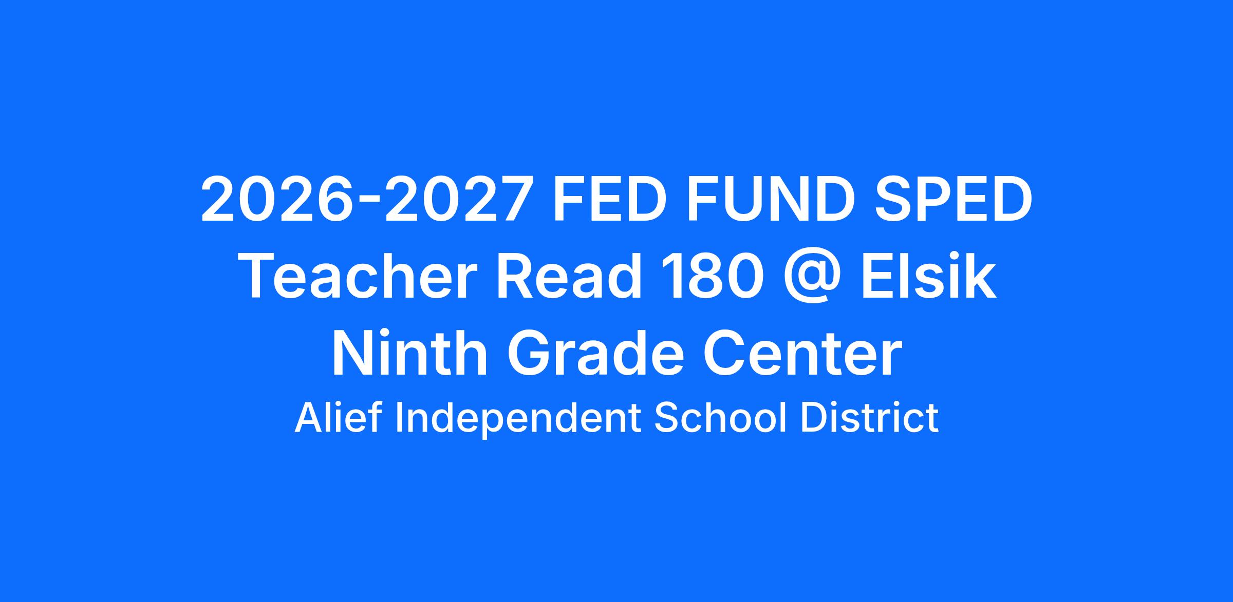 2026-2027 FED FUND SPED Teacher Read 180 @ Elsik Ninth Grade Center
