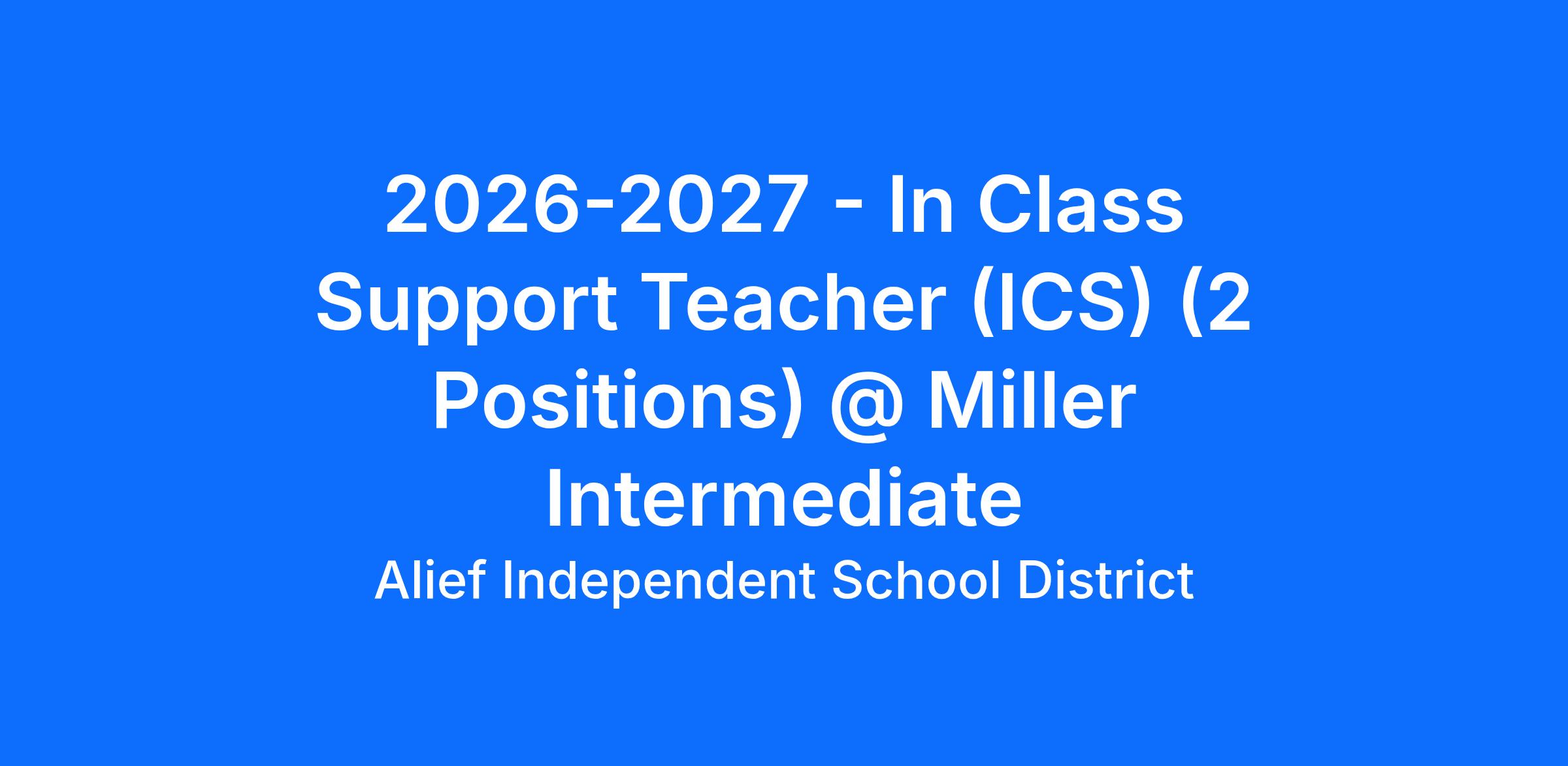 2026-2027 - In Class Support Teacher (ICS)( 2 Positions) @ Miller Intermediate