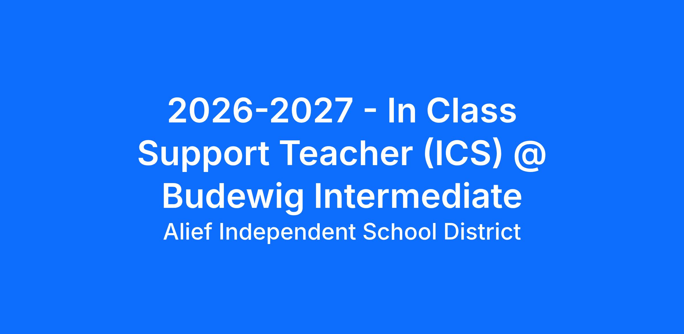 2026-2027 Special Education - In Class Support Teacher (ICS) @ Budewig Intermediate