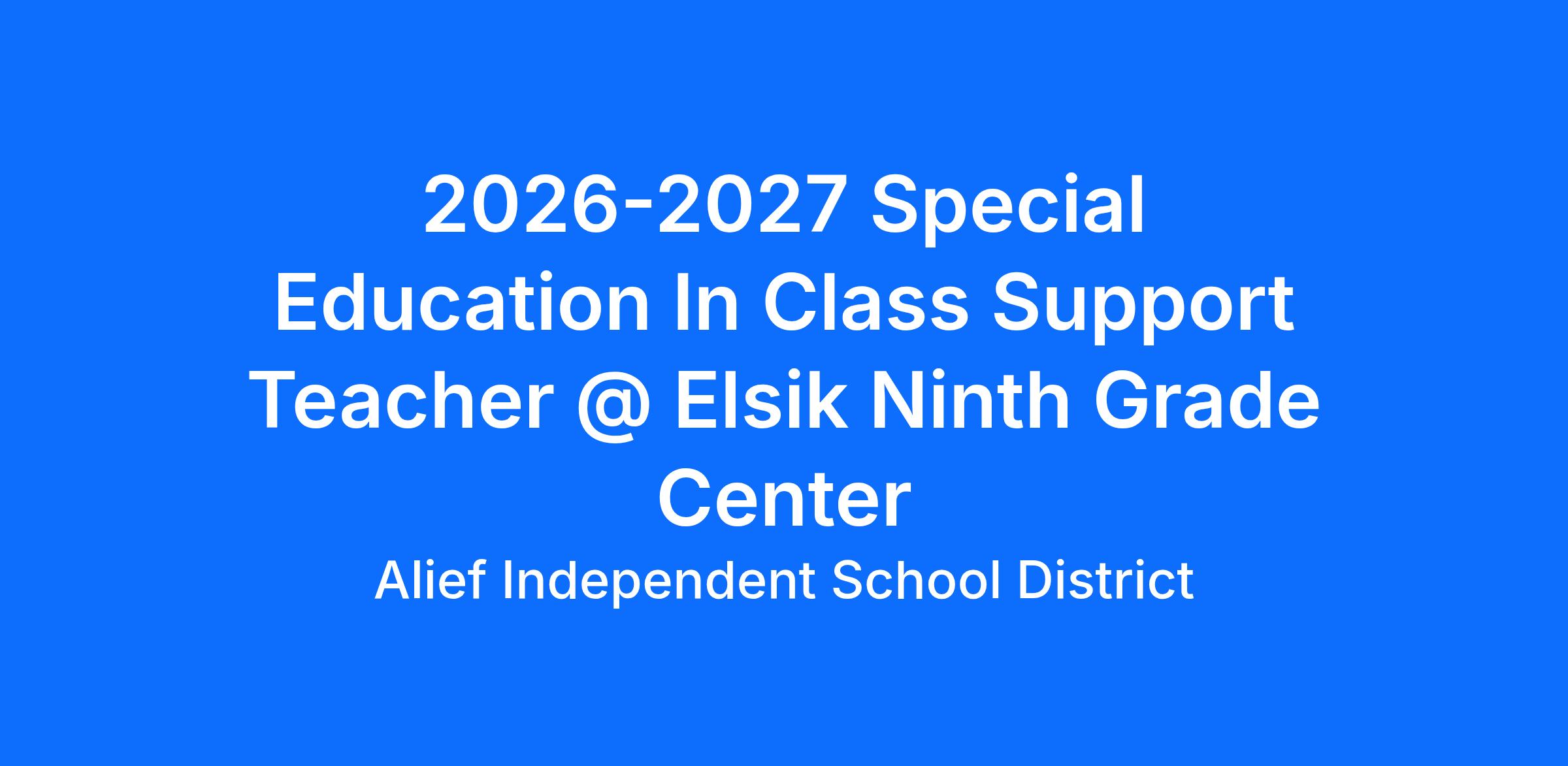 2026-2027 Special Education In Class Support Teacher @ Elsik Ninth Grade Center