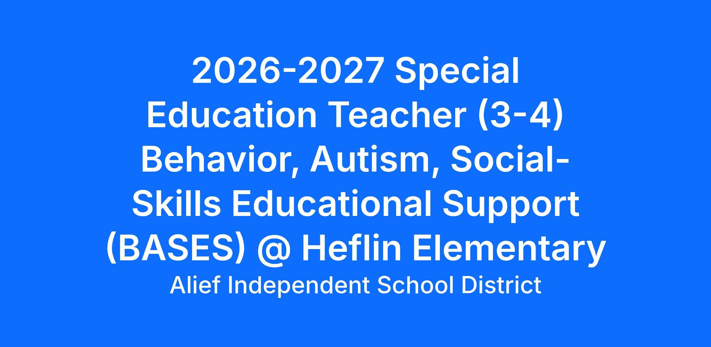 2026-2027 Special Education Teacher (3-4) Behavior, Autism, Social- Skills Educational Support (BASES) @ Heflin