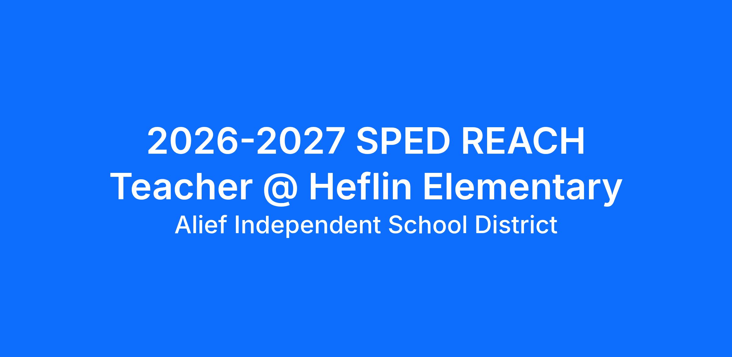 2026-2027 SPED REACH Teacher @ Heflin Elementary