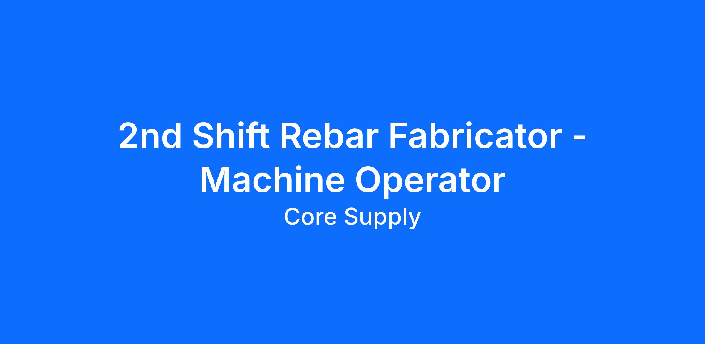 Core Supply in Houston, TX is looking for 2nd Shift REBAR FABRICATION MACHINE OPERATORS to join our team.