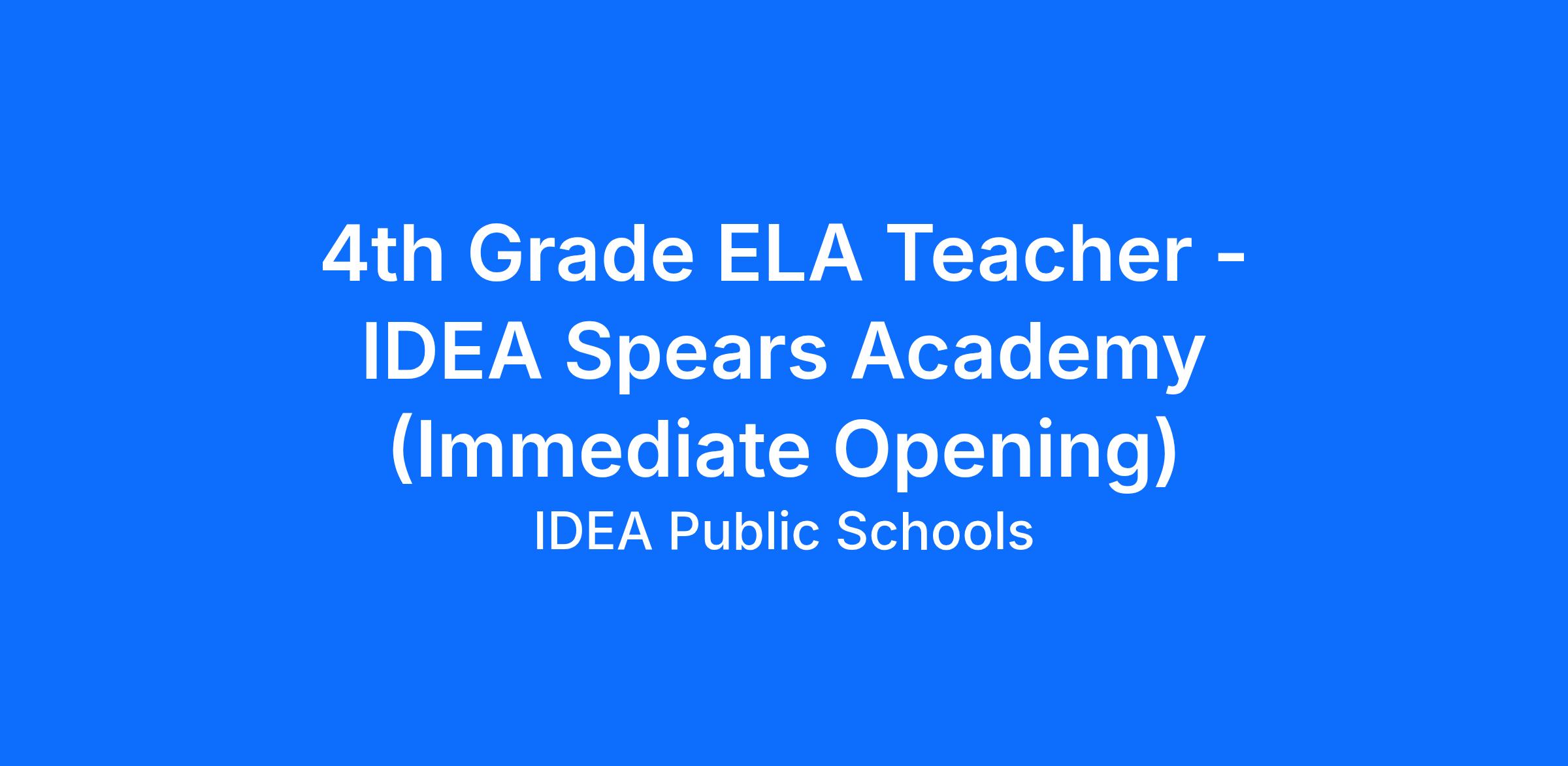 Role Mission: IDEA Academy teachers are responsible for ensuring that every IDEA student masters the academic and social skills necessary to succeed in college, while also embodying IDEA’s values daily.