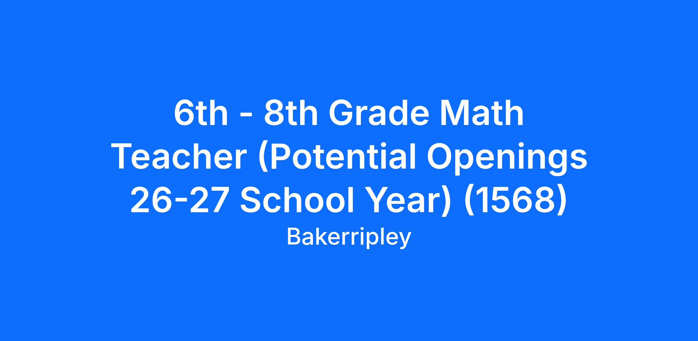 6th - 8th Grade Math Teacher (Potential Openings 26-27 School Year) (1568)