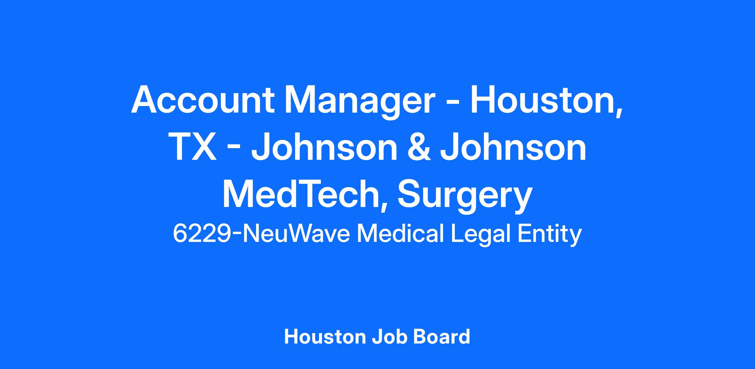 NeuWave Medical, a division of Ethicon, LLC and a member of the Johnson & Johnson Family of Companies, is recruiting for an Account Manager for Houston, TX.