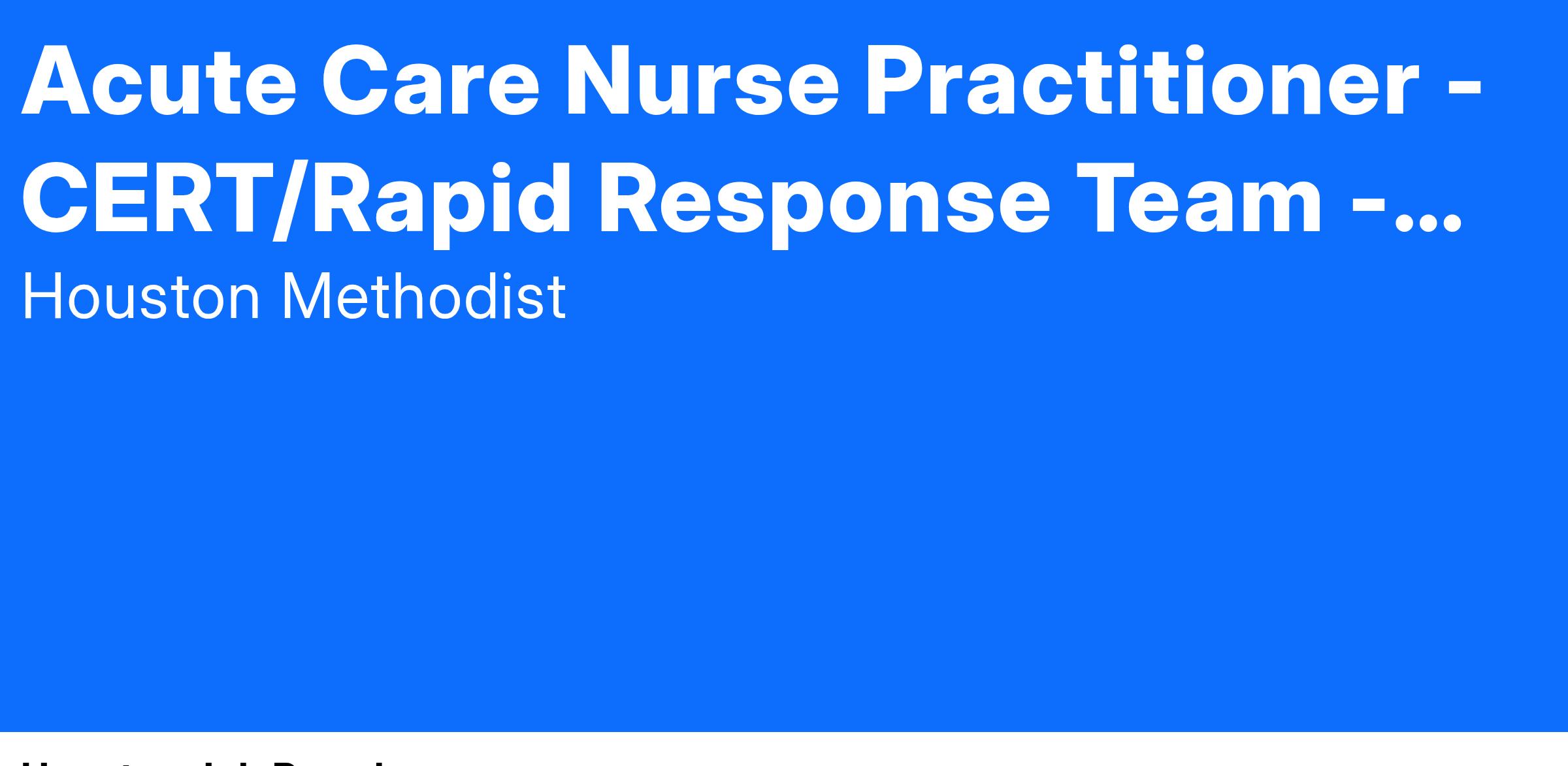 Acute Care Nurse Practitioner - CERT/Rapid Response Team - Days