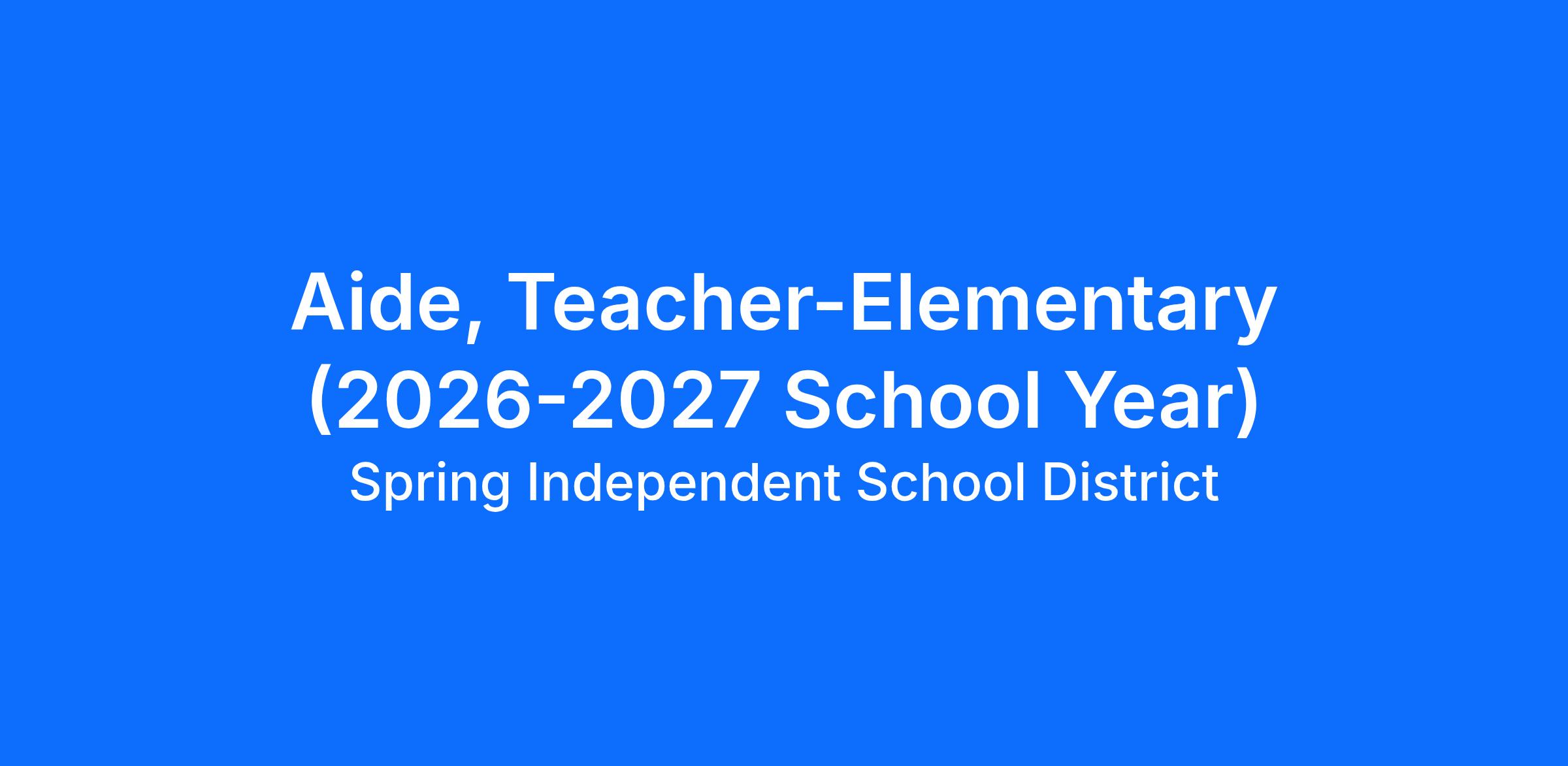 JOB TITLE: Teacher Aide-Elementary (2026-2027 School Year)