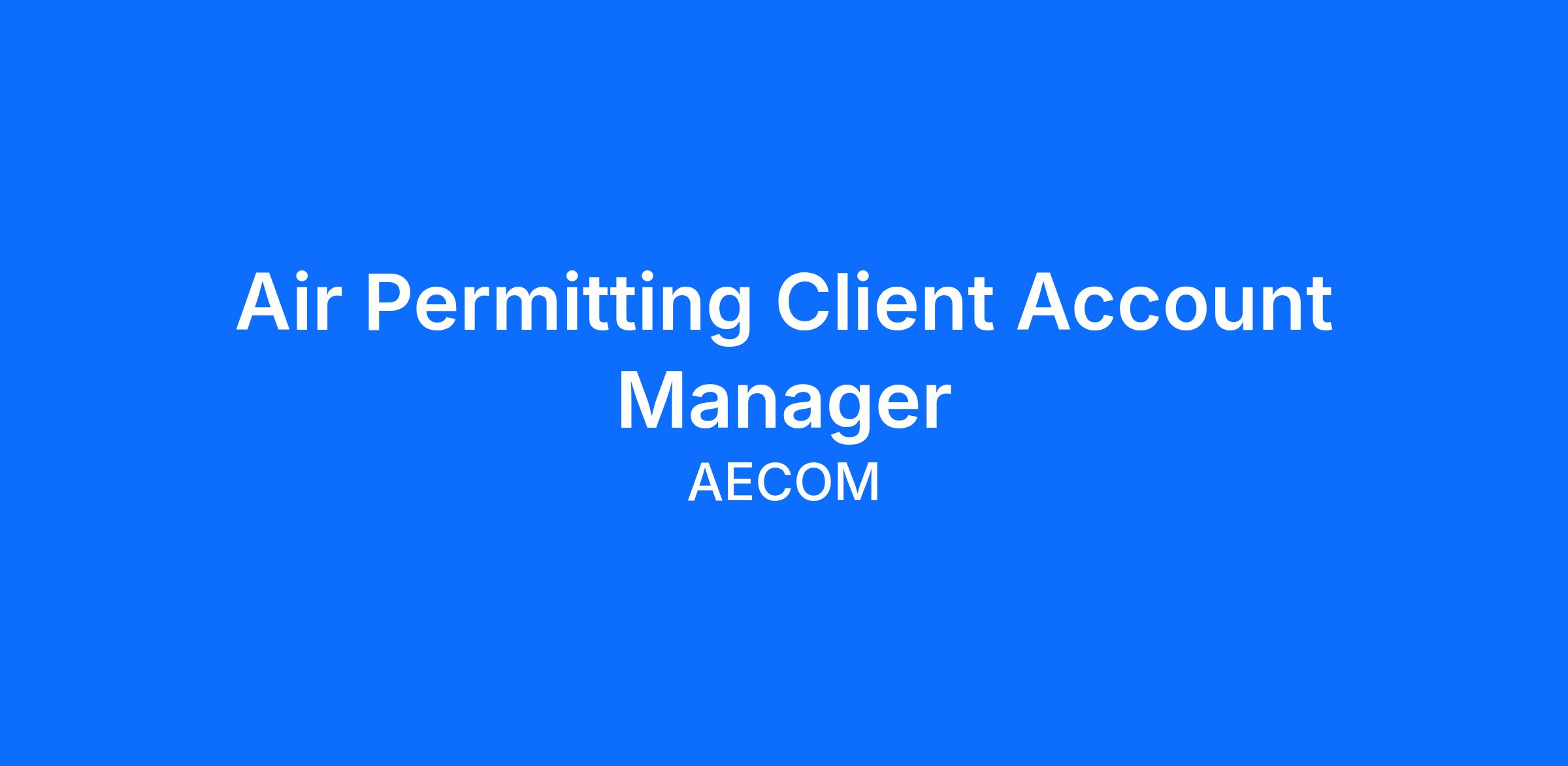 AECOM is seeking an experienced and driven Air Permitting Client Account Manager to join our Air Quality Practice within the Environment Business Line.