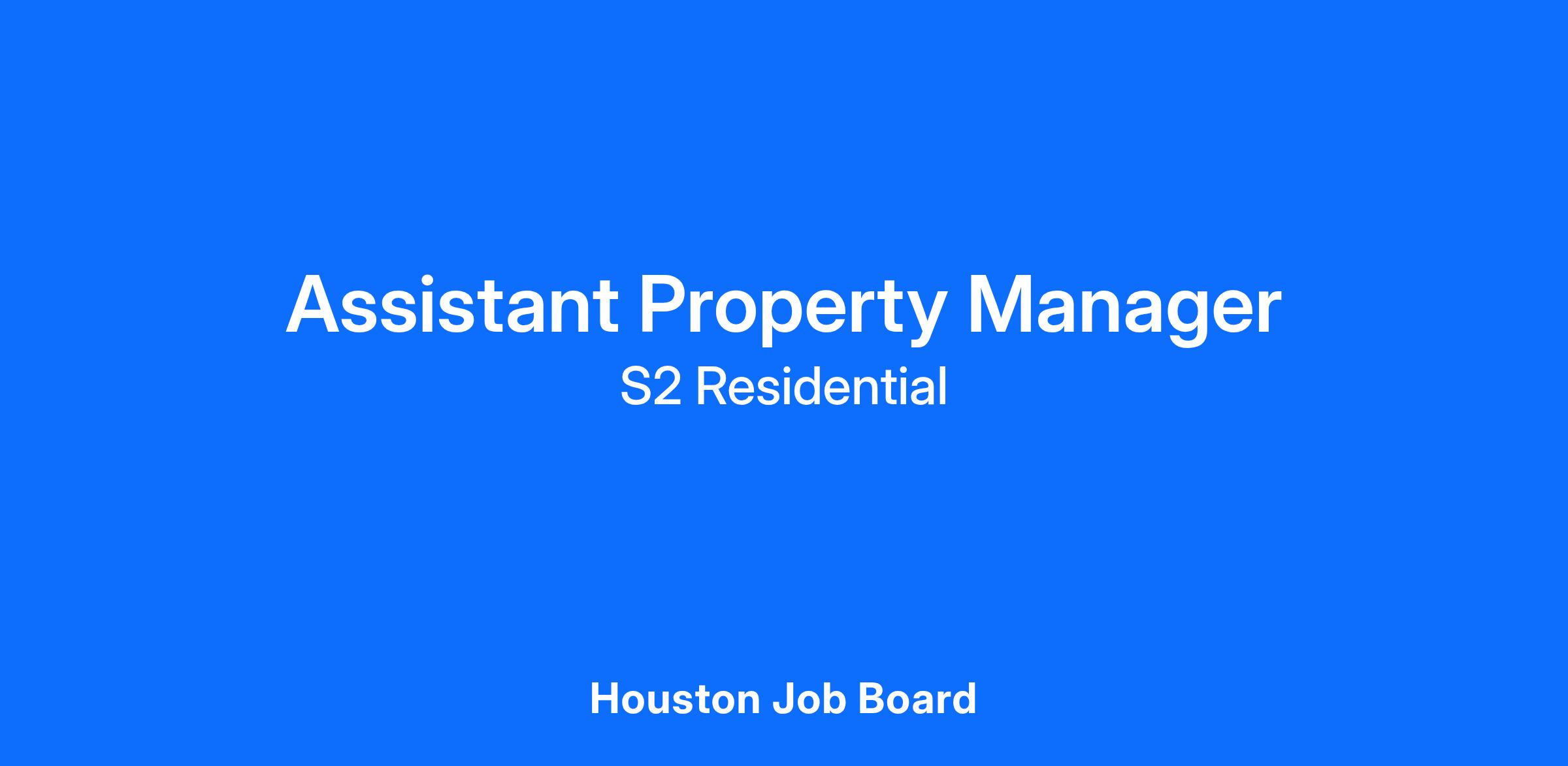 - As the Assistant Property Manager, you’ll ensure that each resident and employee experience is in line with S2 Residential’s mission and core values.