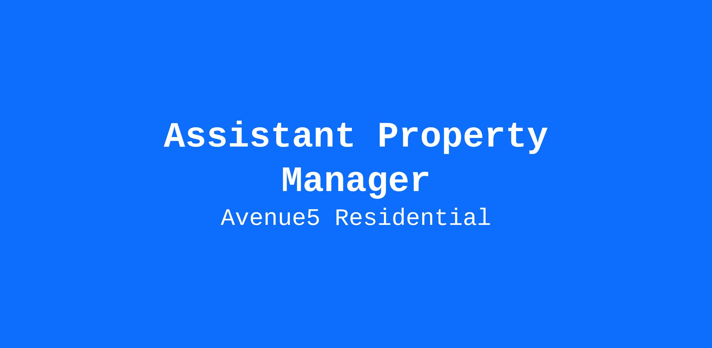 Job Title: Assistant Property Manager