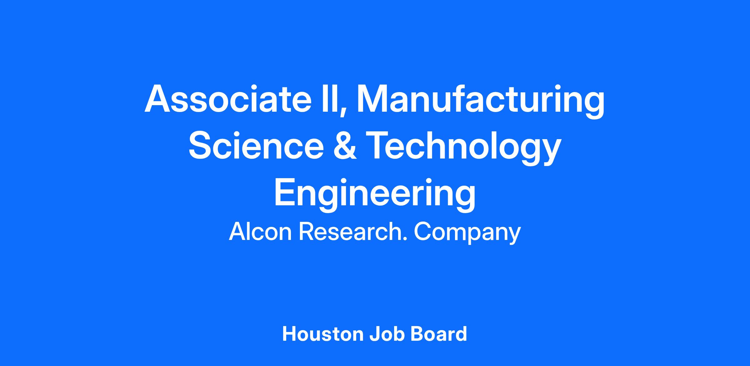 As an Associate II, Manufacturing Science &Technology Engineering, you will be trusted to work on developing, implementing, and evaluating new production materials, equipment, and technologies. You will conduct research, perform feasibility tests, and collaborate with vendors and partner functions, requiring advanced technical knowledge and problem-solving skills at our Manufacturing Facility in Houston, TX!