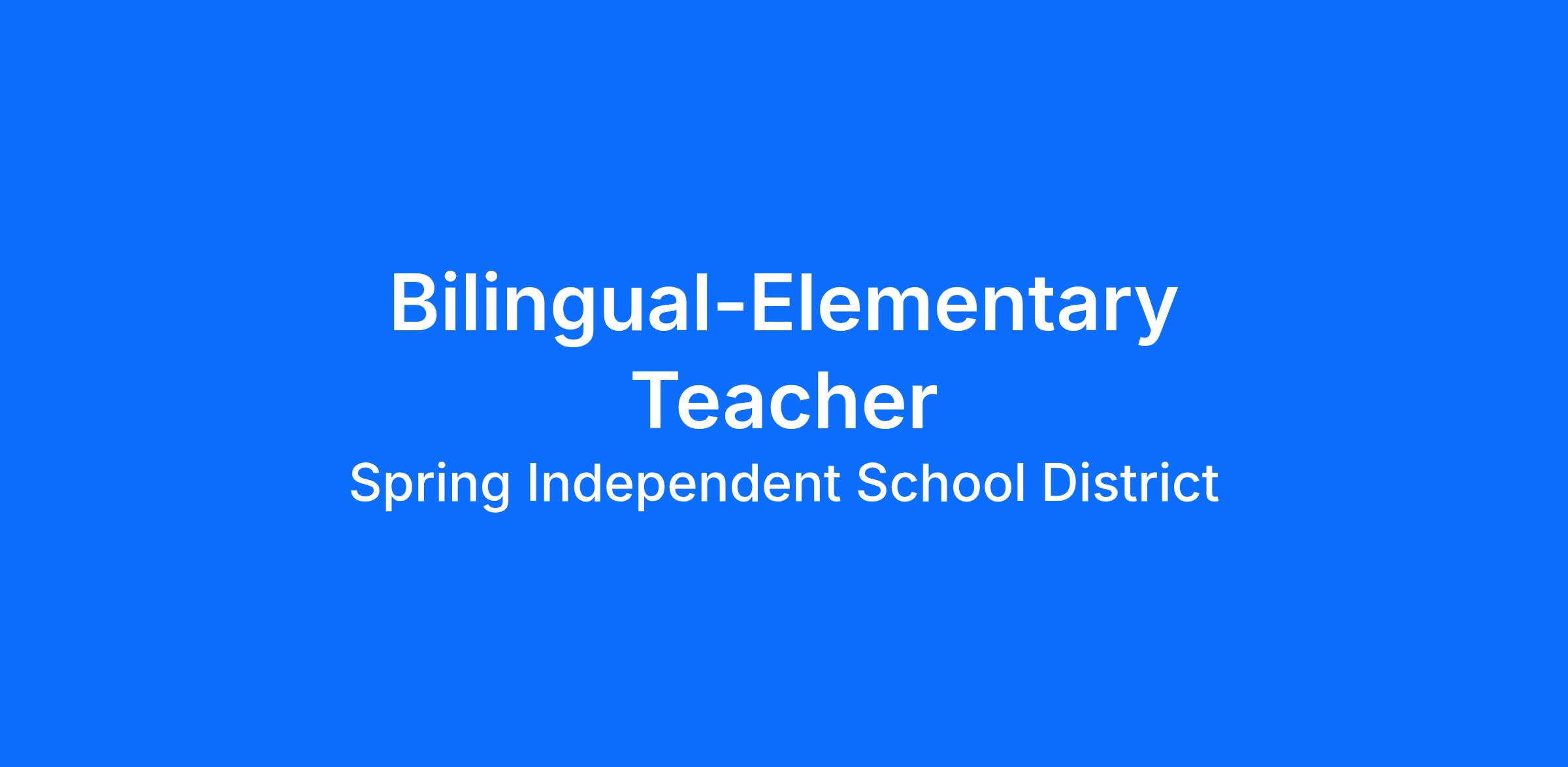 Spring Independent School District has multiple openings for Bilingual Teacher – Elementary