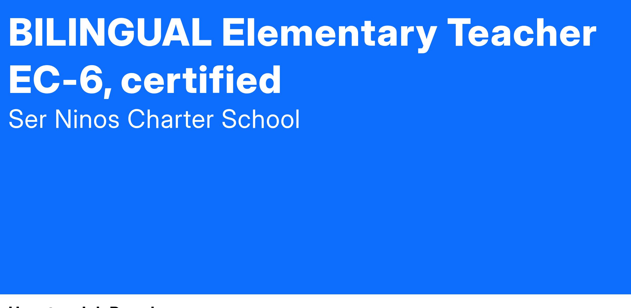 SER-Niños, growing Charter School Systems seeks BILINGUAL certified (EC-6) teachers for our Elementary school program.