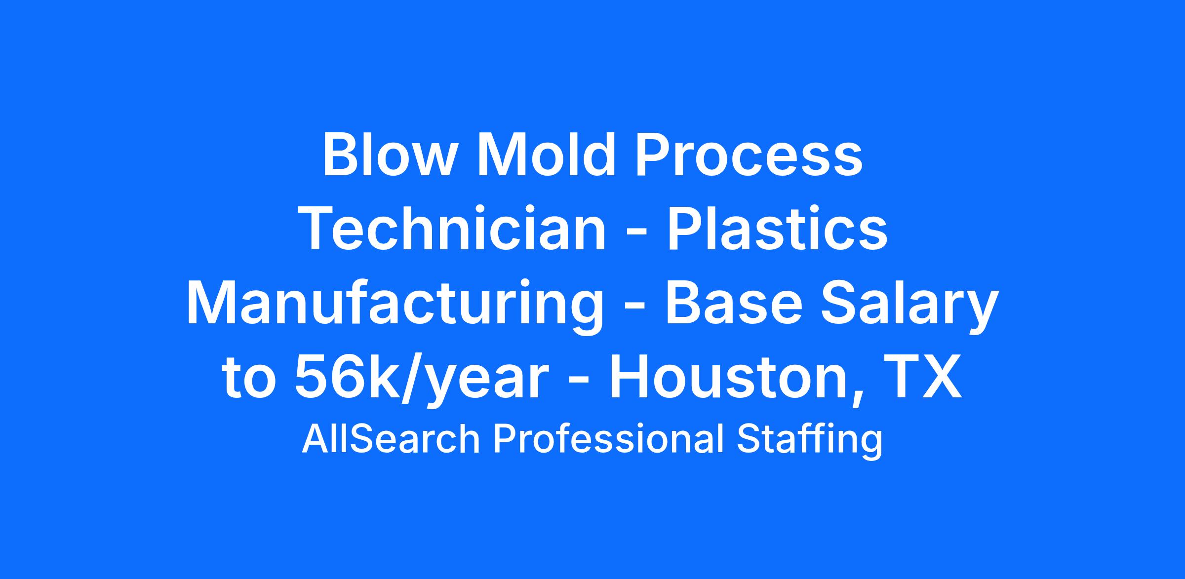 Blow Mold Process Technician - Plastics Manufacturing - Base Salary to 56k/year - Houston, TX
