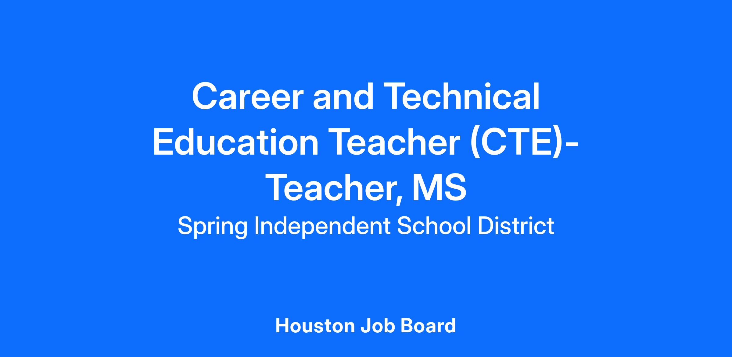 JOB TITLE: Career and Technical Education Teacher (CTE) - Middle School