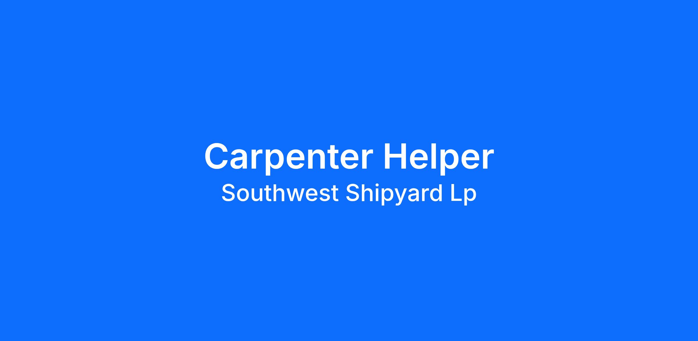 This position is primarily responsible for assisting carpenters in the construction, repair, and maintenance of vessels, barges, and shipyard structures. The Carpenter Helper supports daily operations by preparing materials, maintaining tools, and ensuring work areas are organized and safe. This role requires the ability to work in a physically demanding, safety-sensitive environment while following direction from skilled carpenters and supervisors.
