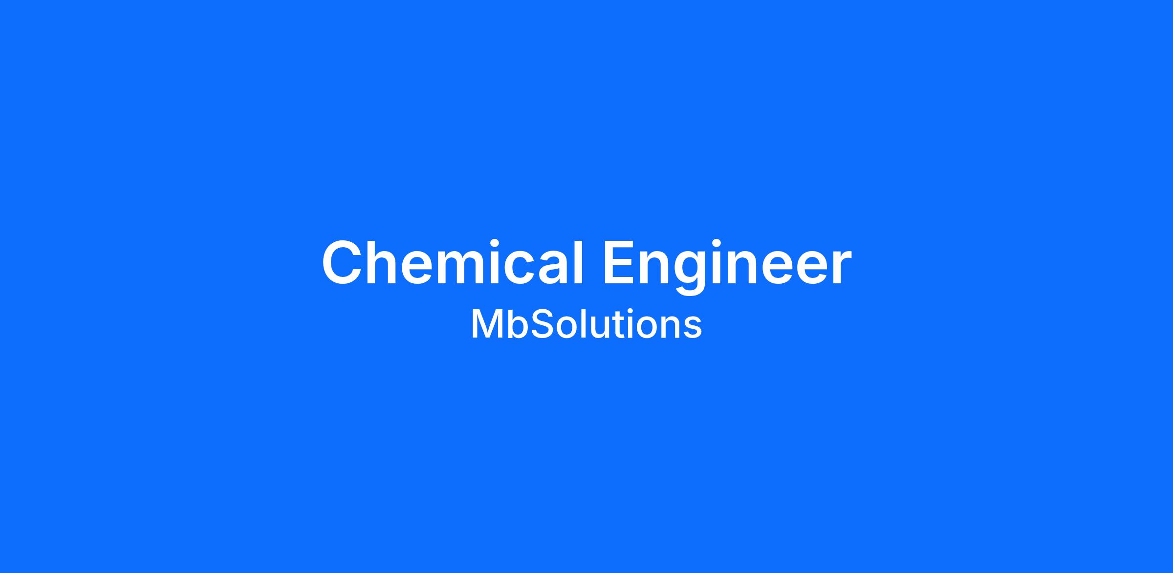 We have an exciting opportunity for a Chemical Engineer to join the team with Mb Solutions Inc., a teammate company.