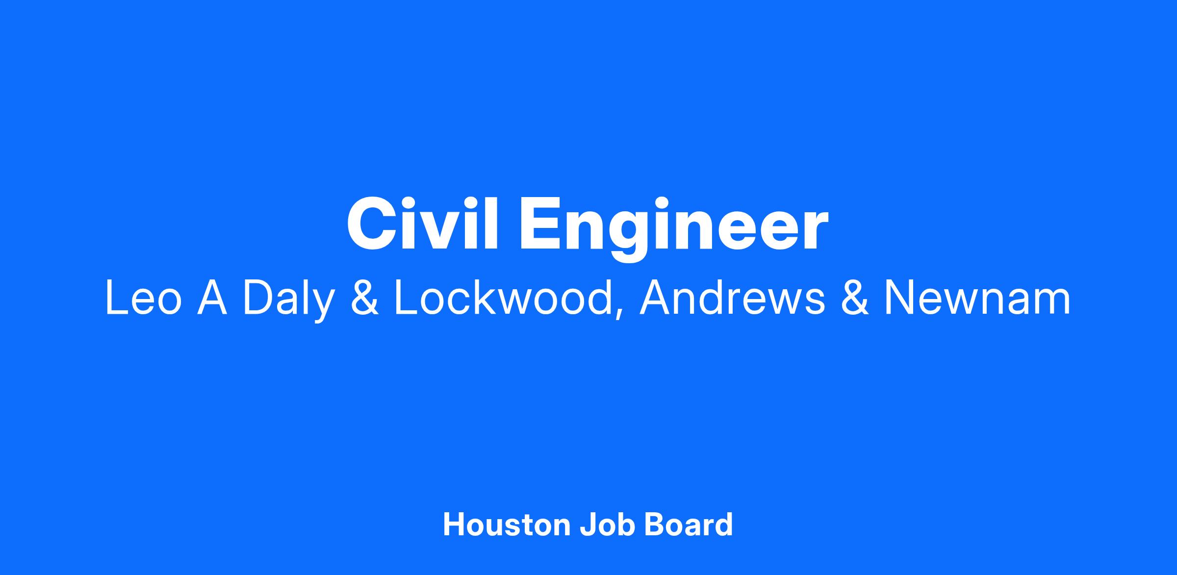 Lockwood, Andrews & Newnam, Inc. (LAN) is an Equal Opportunity Employer and gives consideration for employment to qualified applicants for employment without regard to race, color, religion, age, sex, sexual orientation, gender identity, national origin, citizenship, disability status, protected veteran status, genetic information, or any other characteristic protected by federal, status, or local laws and to prohibit discrimination and harassment based on any of these factors. Lockwood, Andrews & Newnam, Inc., is committed to ensuring equal employment opportunity, including providing reasonable accommodations to individuals with a disability. Applicants with a physical or mental disability who require a reasonable accommodation for any part of the application or hiring process may contact the Human Resources Department at 713-266-6900 or by email using peopleoperations@leoadaly.com . For more information about your rights under the law, see: Know Your Rights