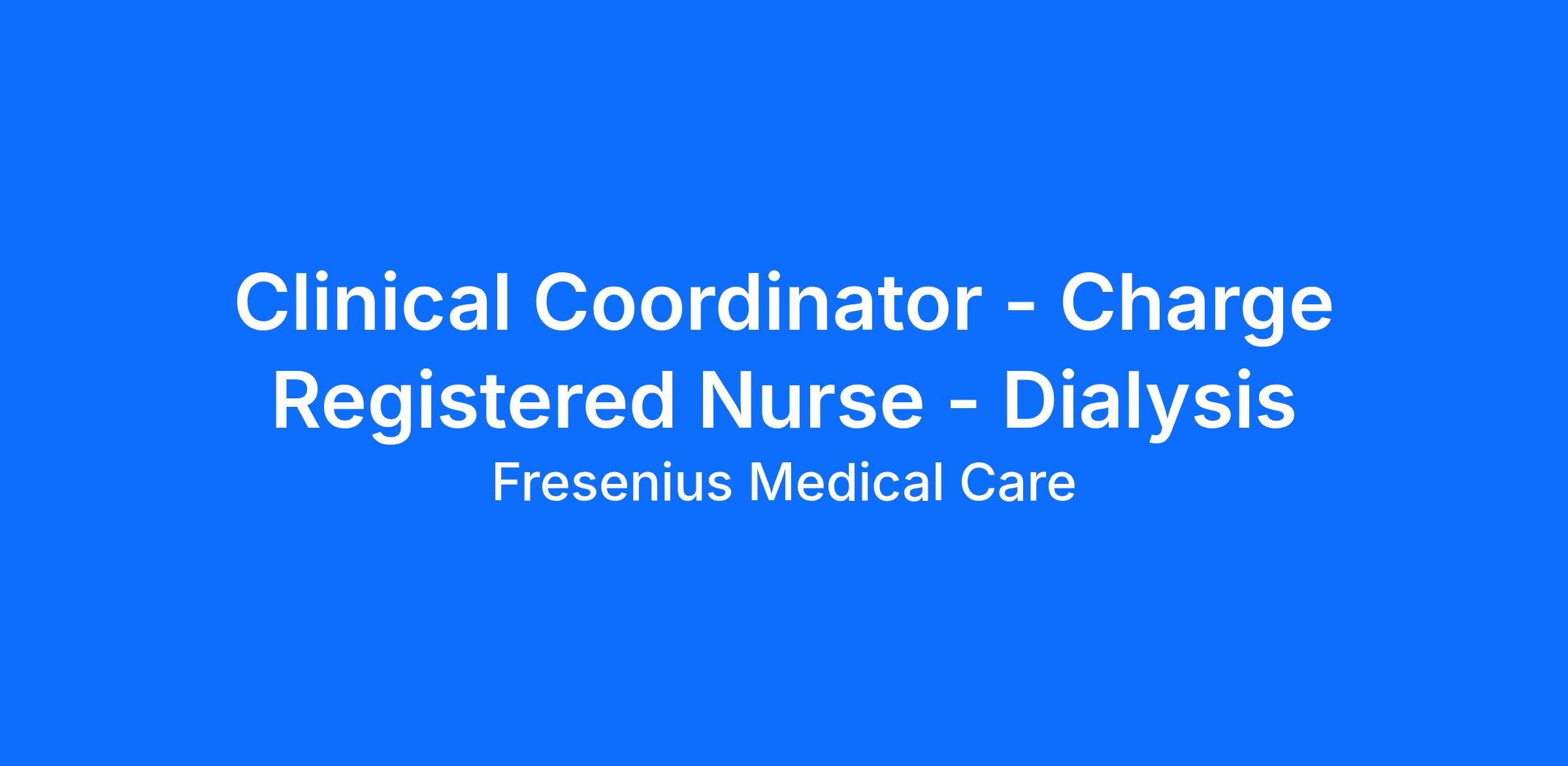 Clinical Coordinator - Charge Registered Nurse - Dialysis