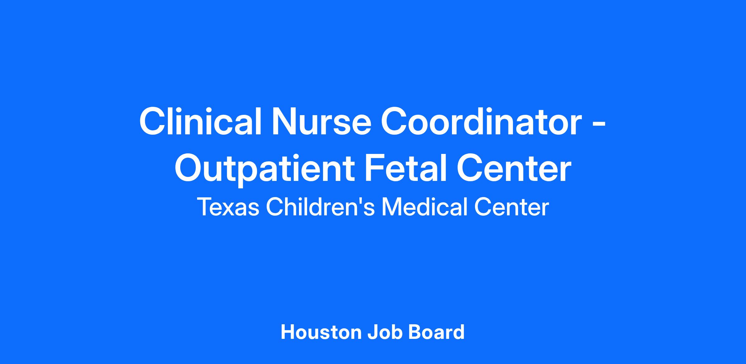 DescriptionWe are searching for a Clinical Nurse Coordinator with Texas Children's Outpatient Fetal Center at The Pavilion for Women— someone who works well in a fast-paced setting. In this position, you'll provide direct and telephone nursing care, health teaching, patient advocacy, supervision and coordination of care given by others, and the coordination of services required for patients outside the ambulatory care setting in a manner that is age and developmentally appropriate.