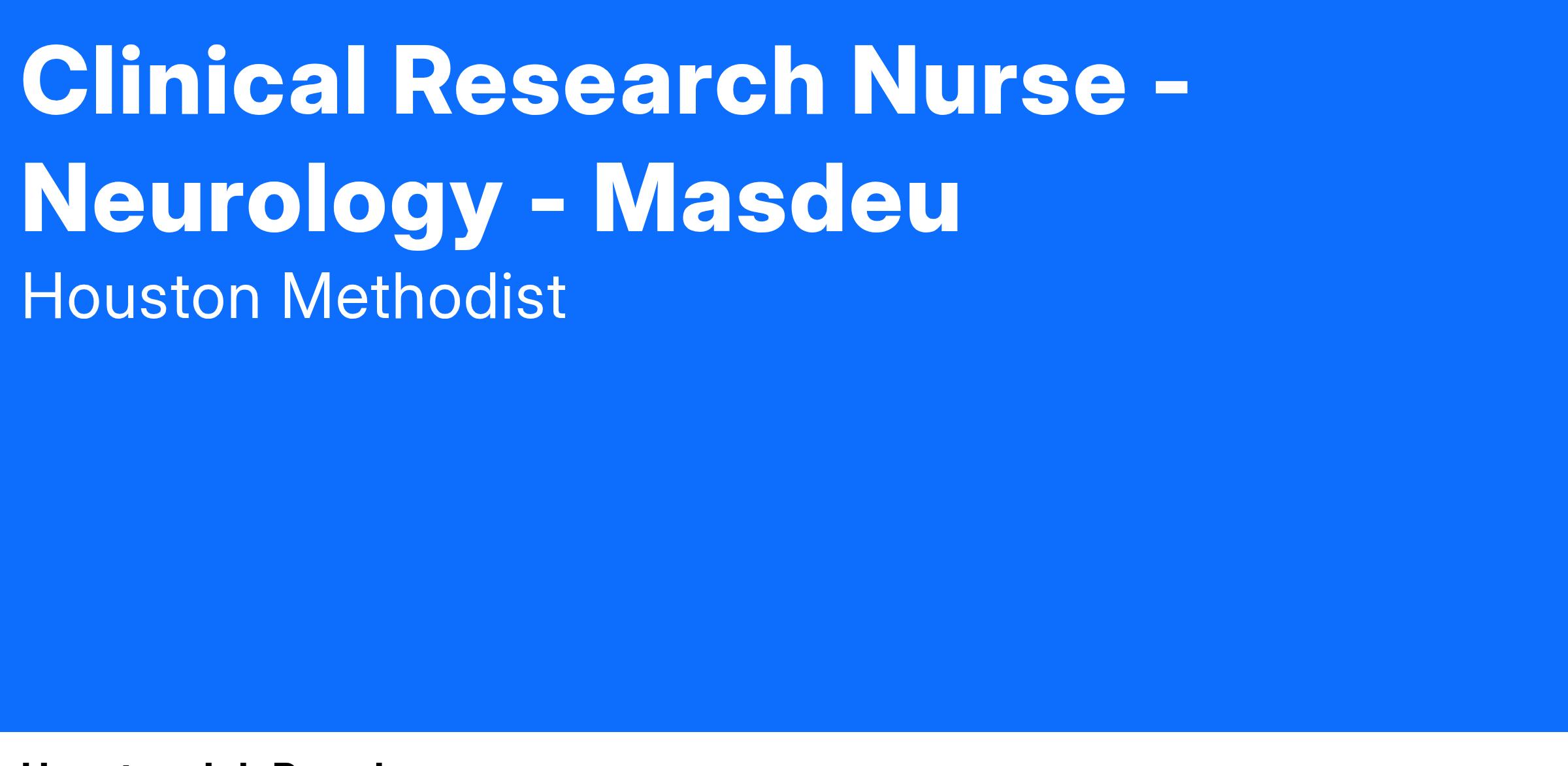 Clinical Research Nurse - Neurology - Masdeu