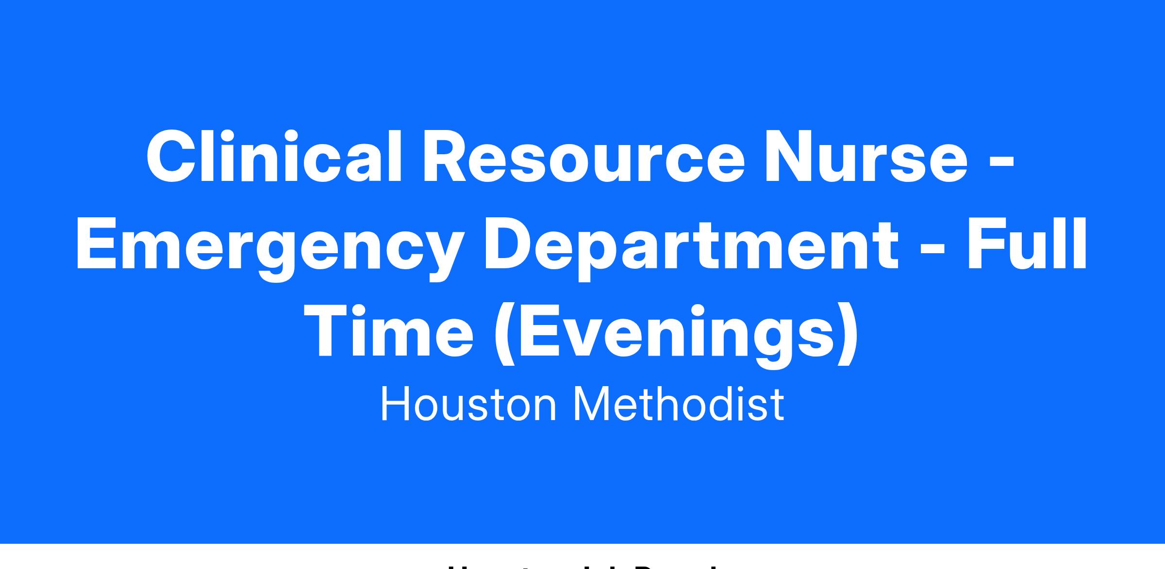 At Houston Methodist, the Clinical Resource Nurse position is a population-specific clinician, patient/client advocate responsible for assisting patients/families navigate the complex health care system in an organized, effective and efficient manner within the variety of Hospital programs. This position will assist with the standardization and efficiency of care for patients in the assigned service line/unit throughout the continuum of patient care. The Clinical Resource Nurse position models patient-centered care and assumes leadership responsibilities with high level contributions in direct patient interaction, the unit, the service line, and across the organization. This position assists management with the coordination of program education and assists with the overall growth of the service line program. Responsibilities for the Clinical Resource Nurse position may also include leading unit and shared governance activities, assessing service line/unit-based needs related to practice and improvement opportunities, and serving as a clinical resource for both service line program and hospital staff as well as evaluation of direct costs and patient outcomes.
