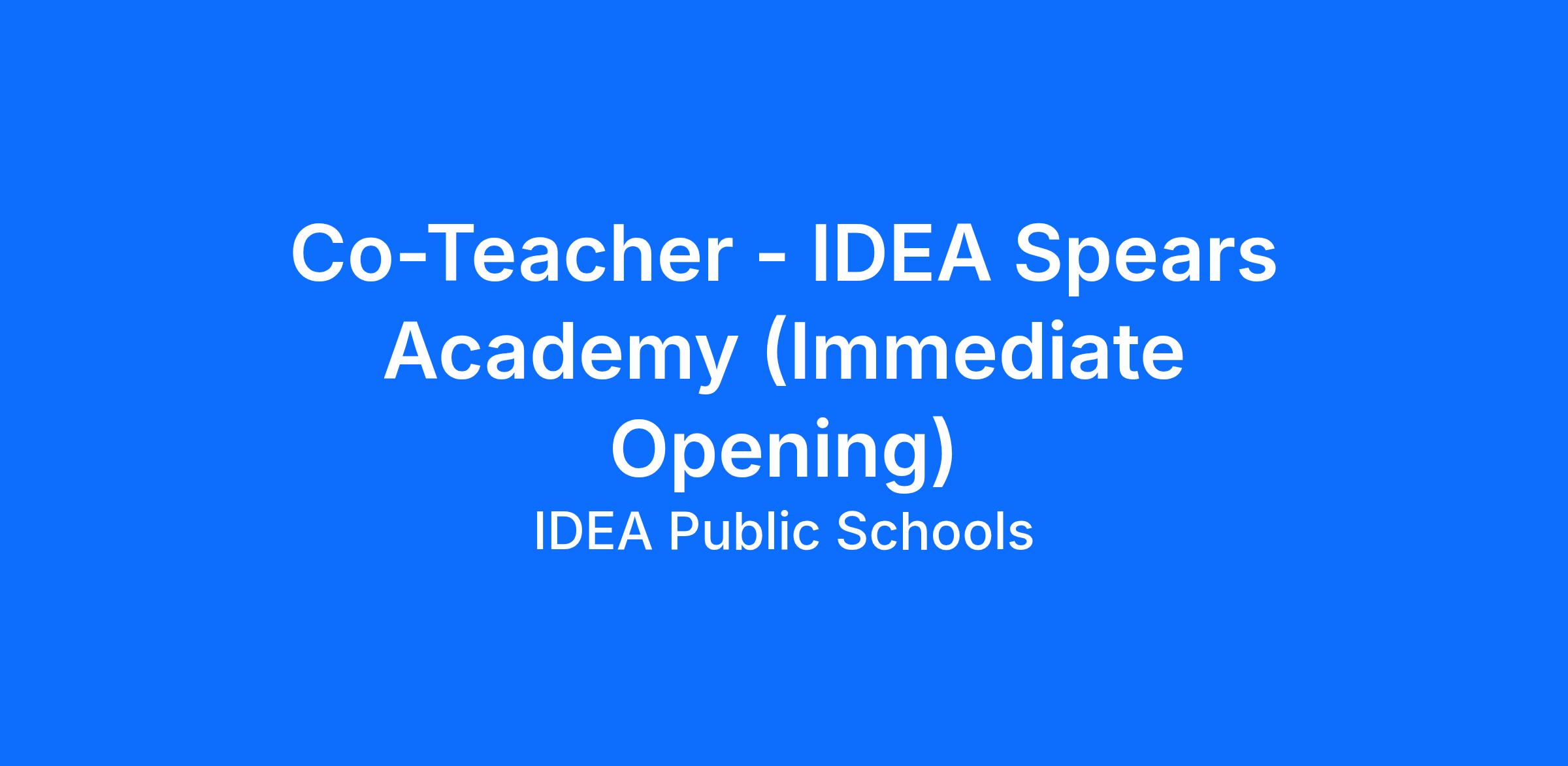 Role Mission: IDEA Co-Teachers learn instructional strategies and develop their teaching skills in order to provide highly effective instruction to IDEA students. IDEA Co-Teachers implement Direct Instruction Curriculum (DI) and are responsible for student instruction under the guidance of an IDEA teacher and assistant principal of instruction. DI co-teachers use clear instruction and always teach to mastery. This means that teachers do not move on in the lesson until students have grasped the content they need to know. Groups are organized by level, so that every student can learn at their own pace.
