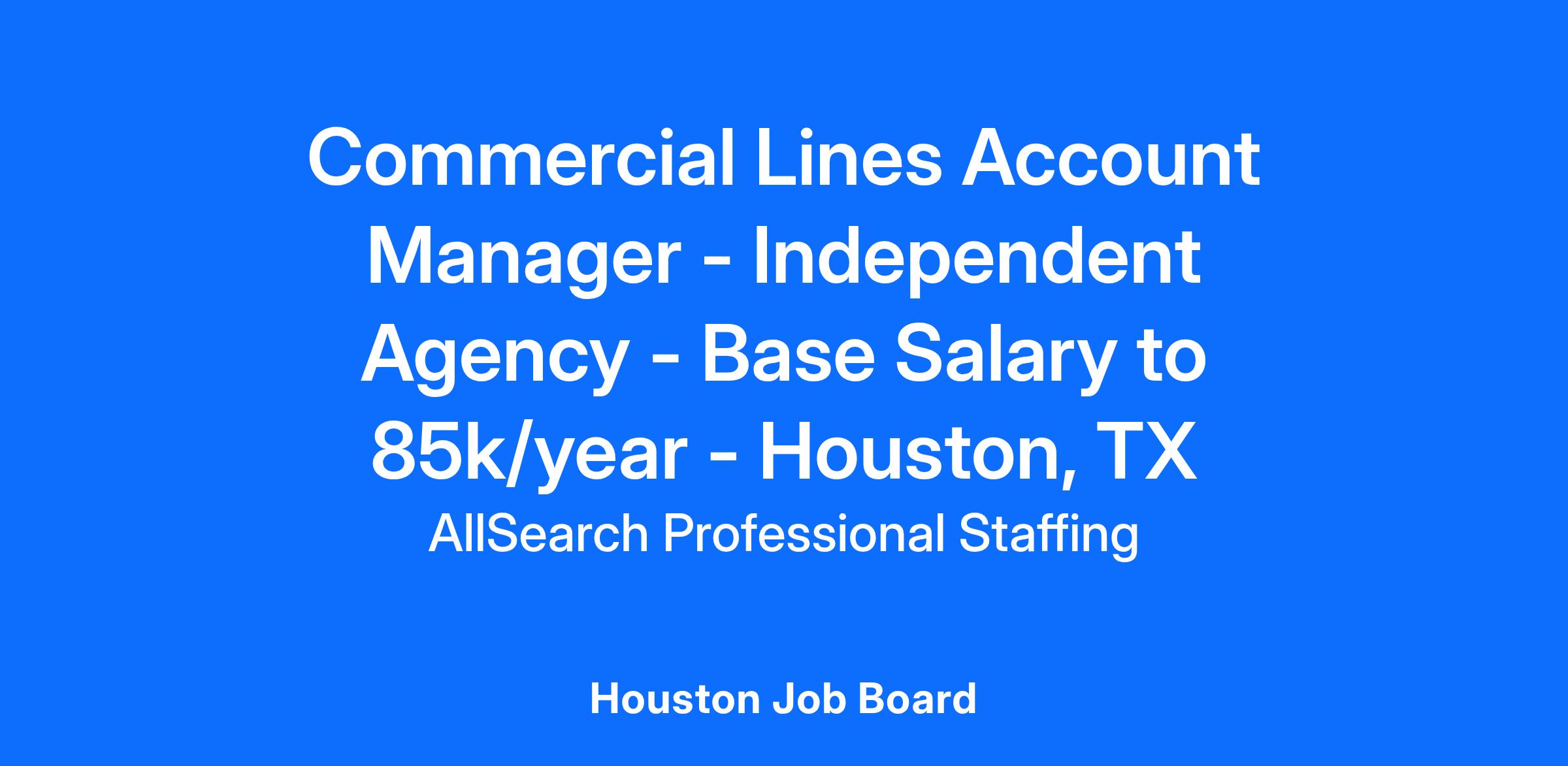 Commercial Lines Account Manager - Independent Agency - Base Salary to 85k/year - Houston, TX