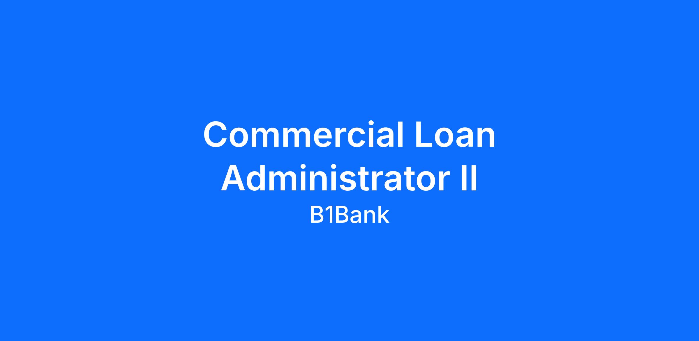 The Commercial Loan Administrator II supports Bankers and the Lending Department in processing loan applications, preparing documentation, and maintaining effective communication with clients and internal/external stakeholders. This role is responsible for ensuring the accuracy and uniformity of all legal and loan documents and minimizes the risk of loss to the Bank. The Commercial Loan Administrator II ensures that all loans are closed and maintained in accordance with state and federal regulations and adheres to Bank policies and guidelines.Β