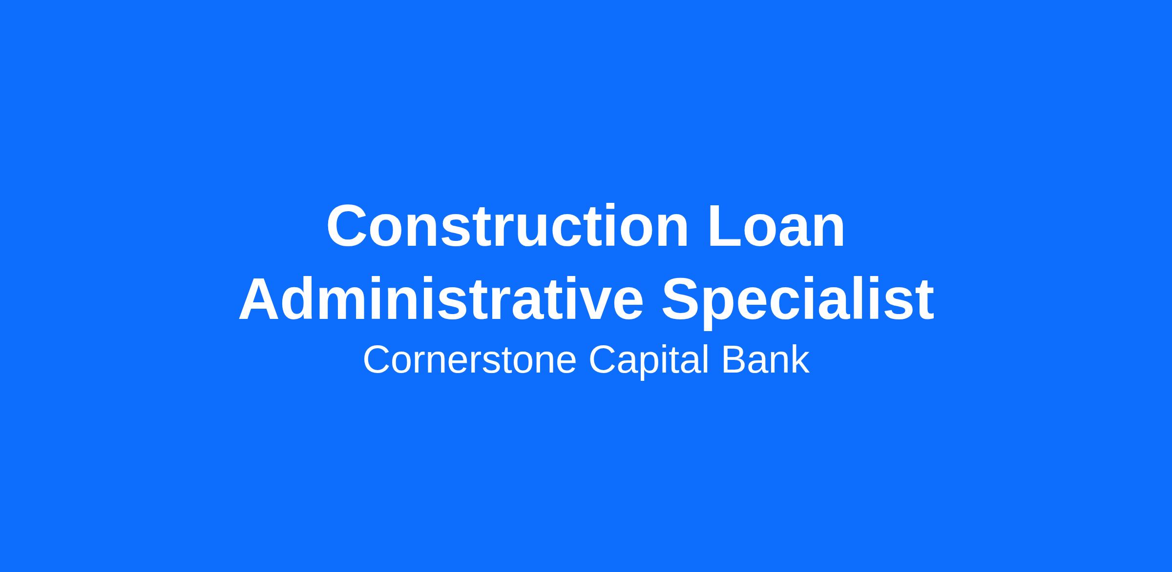 We are seeking a Construction Loan Administrative Specialist to join our Construction Lending team!