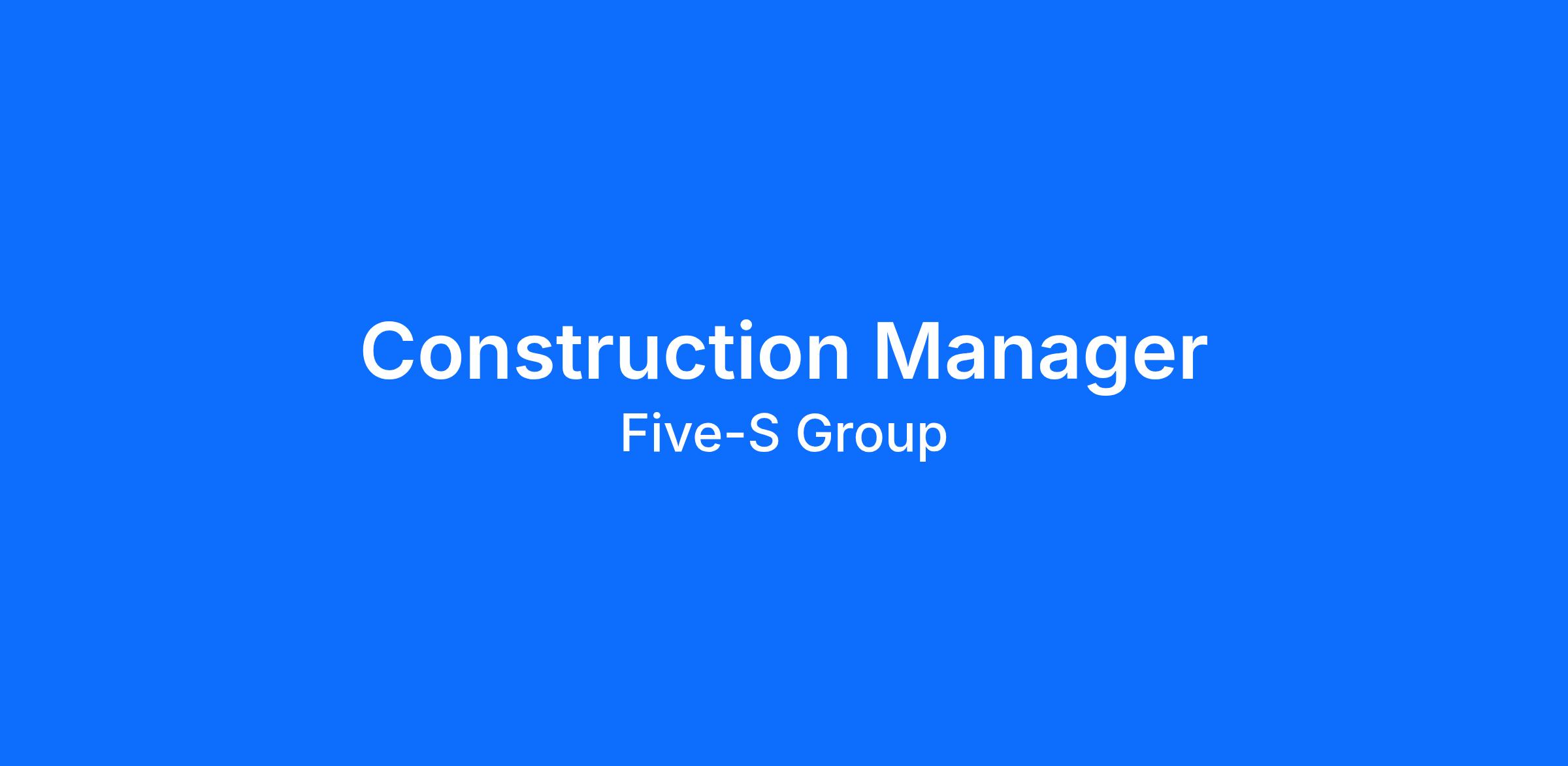 At Five-S, The Construction Manager will be responsible for the success of all field operations. The main responsibility of the Construction Manager is to manage and oversee all field operations and act as the liaison between the field and office management. Duties include assisting Project Superintendents to ensure client satisfaction, jobsite safety, project labor budget, production, timely schedule, and verifying quality. Provide leadership and development throughout different areas of the company while implementing company core values and safety culture. The Construction Manager will report to the Vice President of Projects.