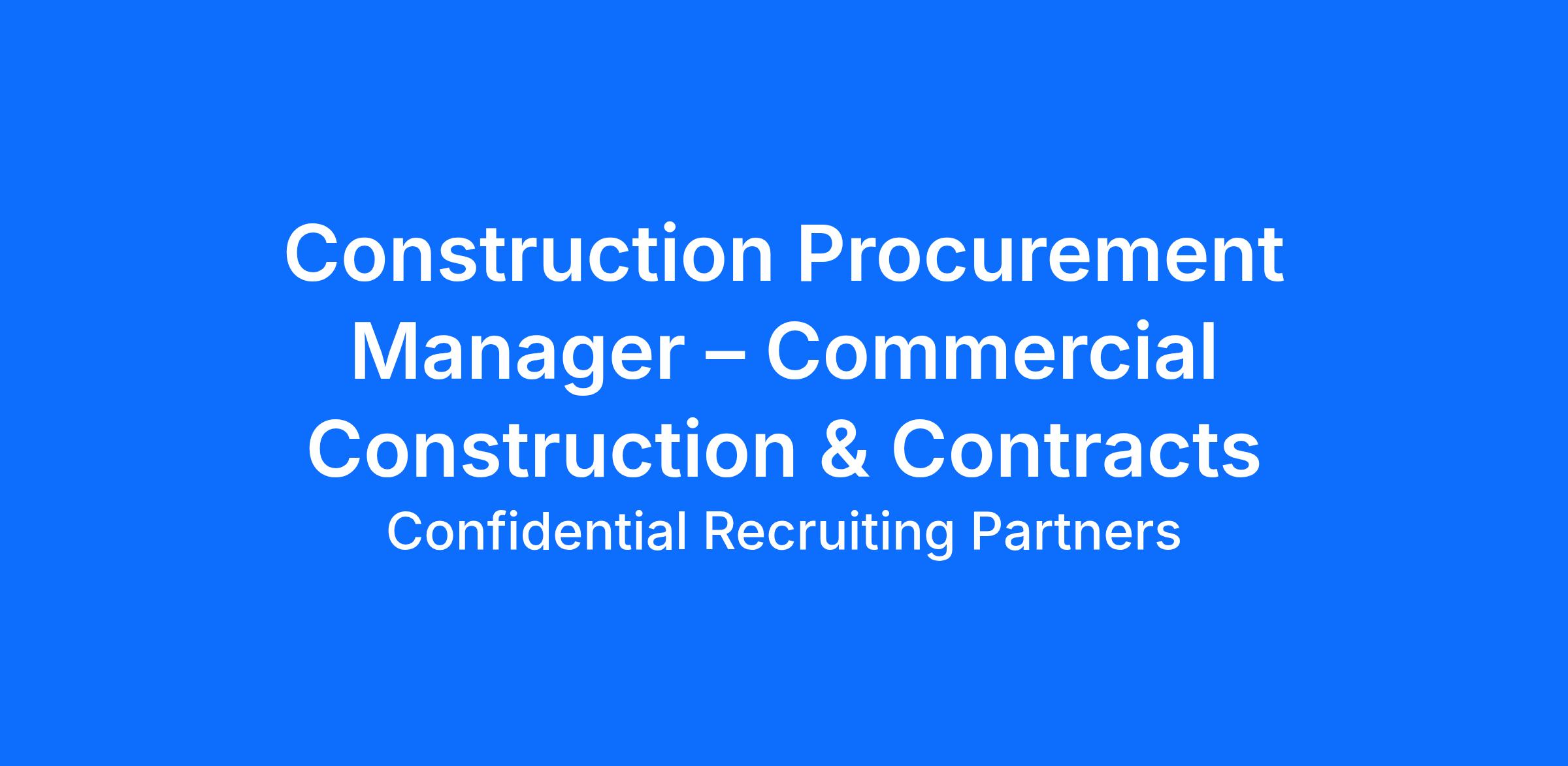 Our client is seeking a Construction Procurement Manager (Commercial & Contracts) to join the Design & Construction team. Reporting to the VP of Construction Services, this role leads the sourcing and procurement of construction materials, services, and contractors for new builds, remodels, and infrastructure projects. The position requires deep expertise in construction procurement, supplier management, contract negotiation, and cost‑efficient sourcing strategies.