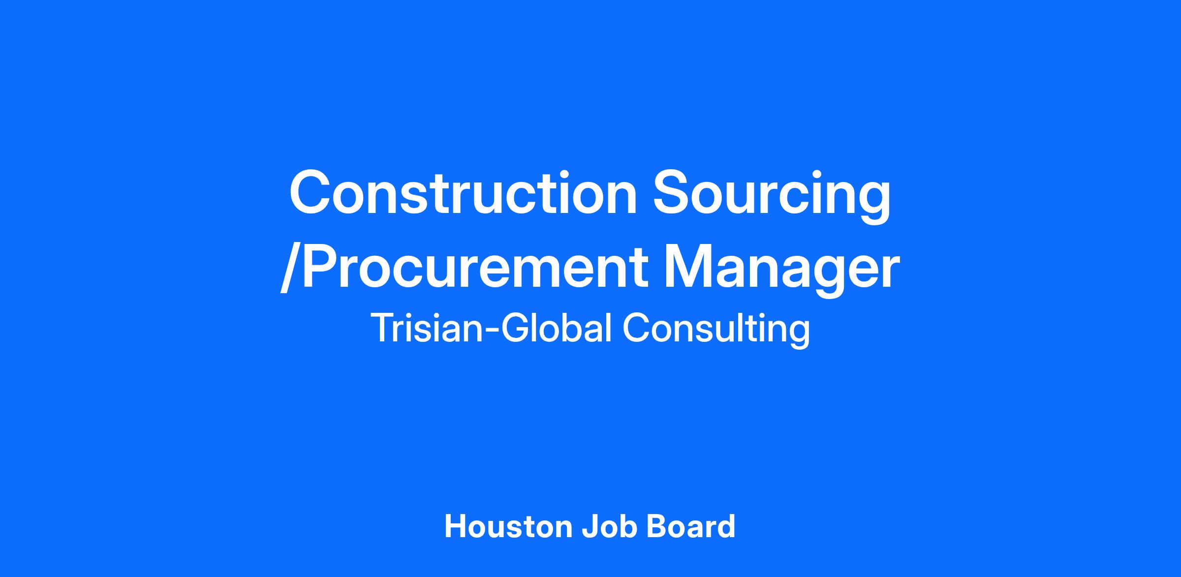 Trisian-Global Consulting LLC is seeking a highly motivated and skilled Construction Sourcing / Procurement Manager in Houston, TX. This role will report directly to the VP, Construction Services and will be responsible for leading the procurement and sourcing of construction materials, services, and contractors for new builds, remodels, and infrastructure projects. The ideal candidate will bring deep expertise in construction sourcing, supplier management, and contract negotiation, with a strong focus on operational excellence and cost efficiency.