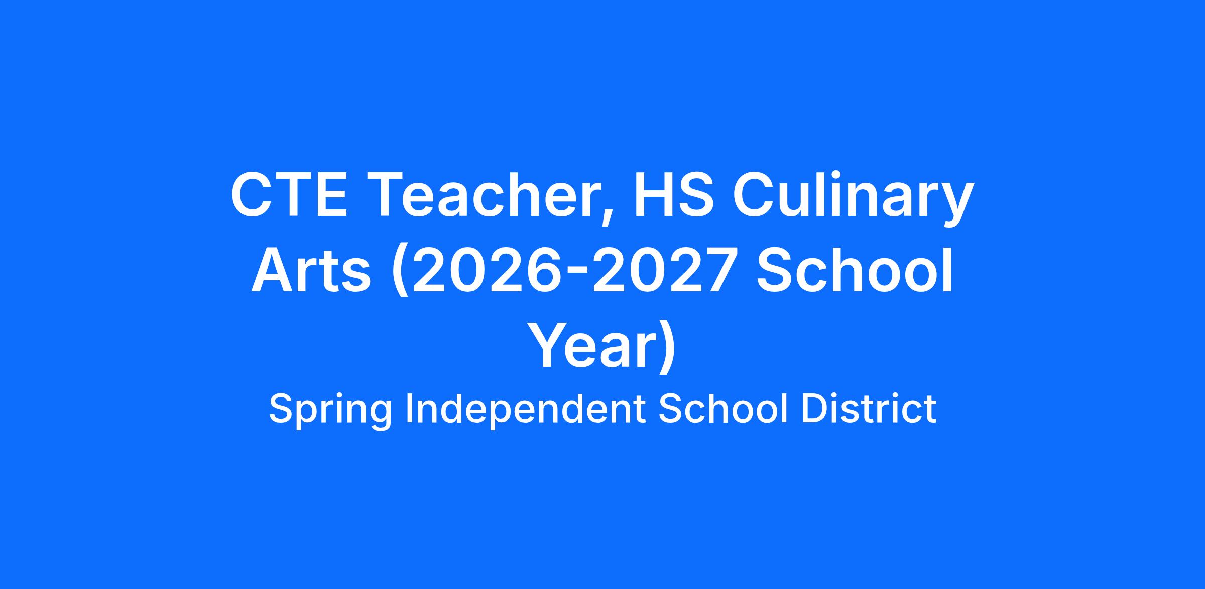 JOB TITLE: Career and Technical Education Teacher (CTE) - High School