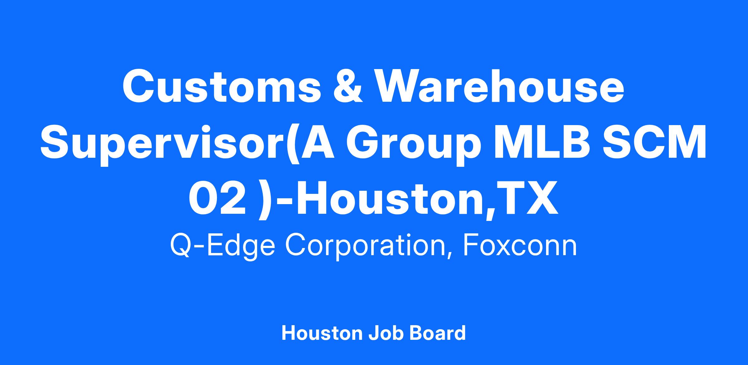 Position Summary: Foxconn Houston seeks a Customs & Warehouse Supervisor to manage daily operations for our Houston team. In this role, you will: