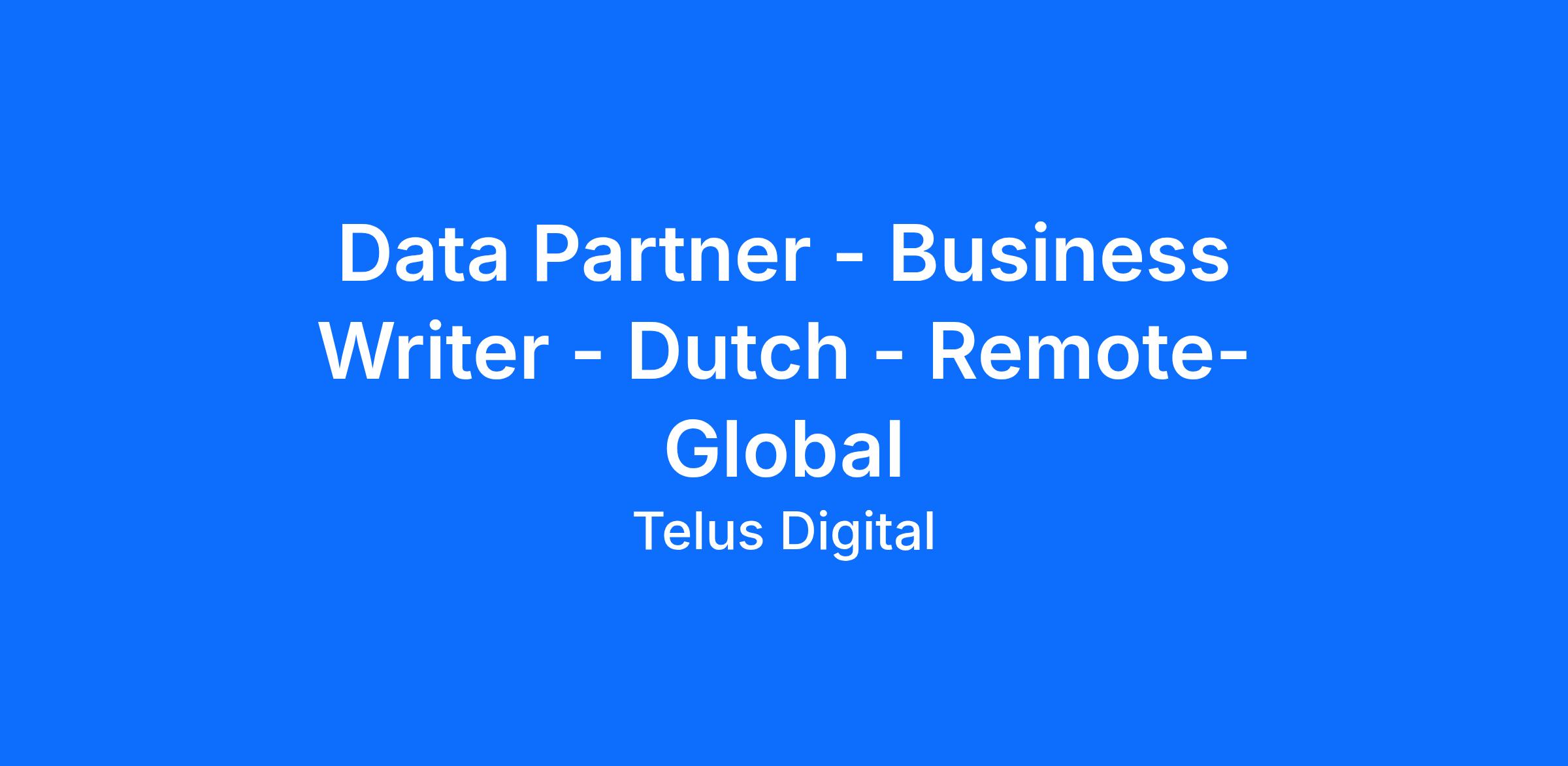 Data Partner - Business Writer - Dutch - Remote- Global