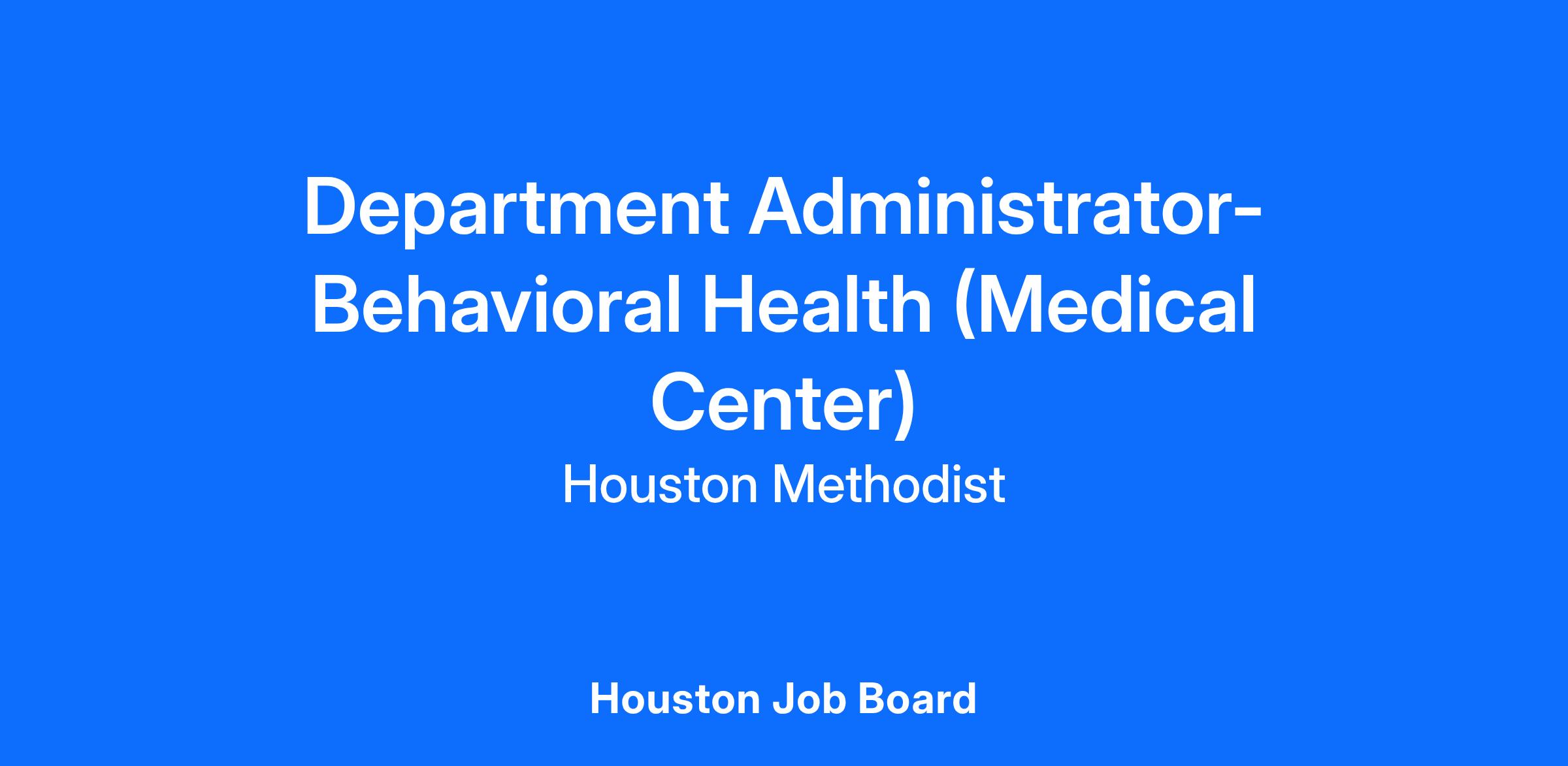 Department Administrator- Behavioral Health (Medical Center)