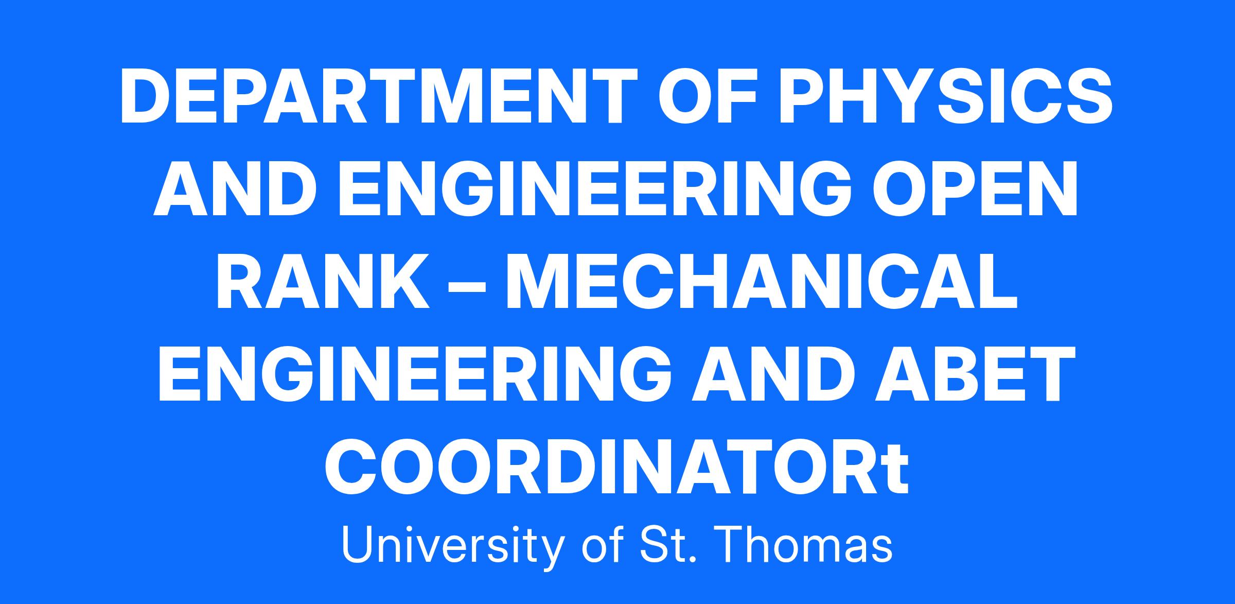 DEPARTMENT OF PHYSICS AND ENGINEERING OPEN RANK β MECHANICAL ENGINEERING AND ABET COORDINATORt